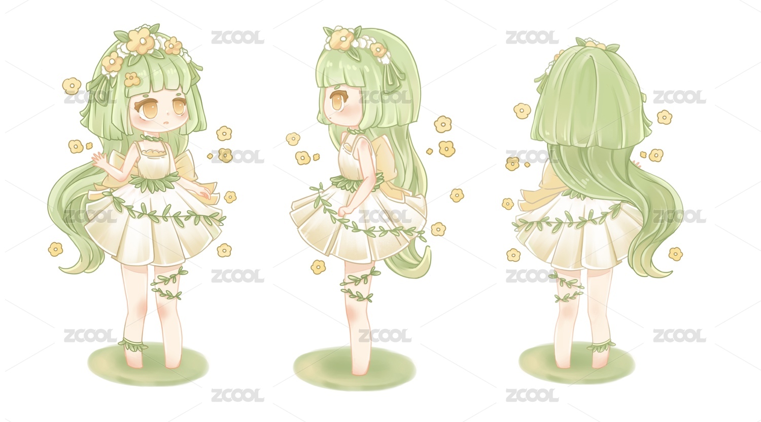 原创矢量卡通人物ip形象三视图