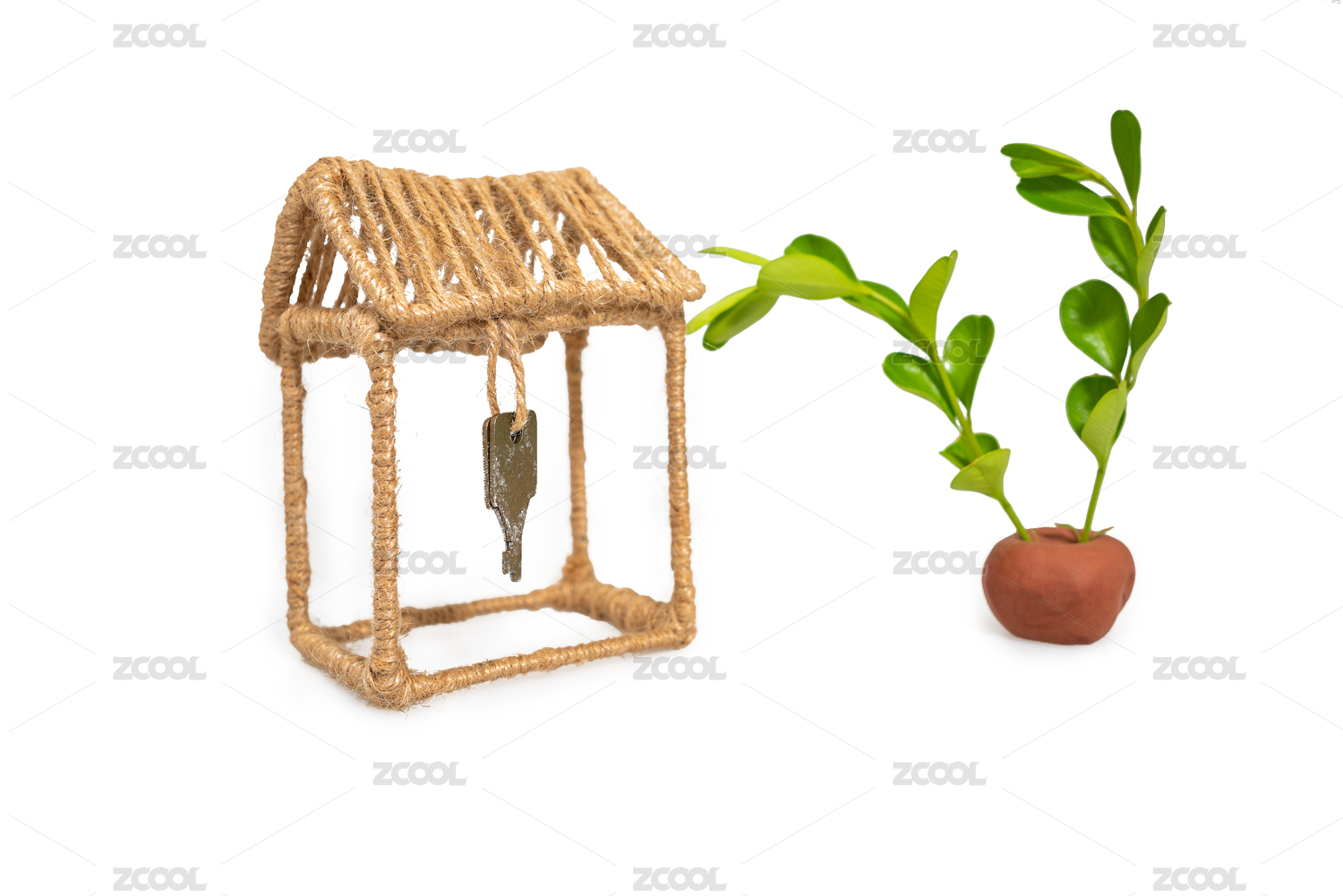 手工麻绳制作茅草屋建筑模型