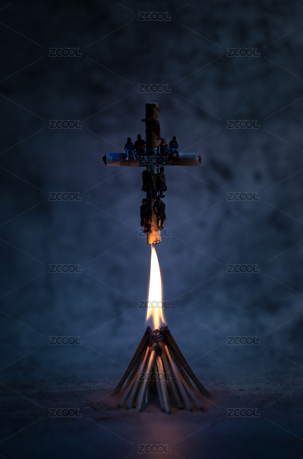 禁烟戒烟燃烧火柴火焰慢性死亡