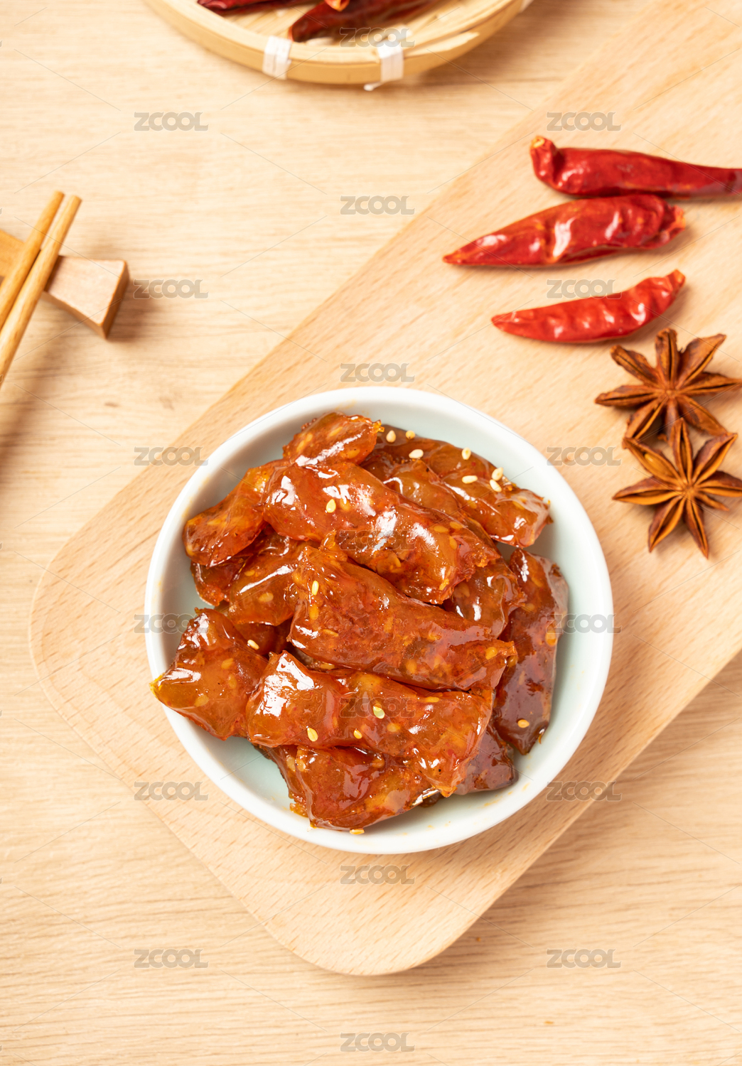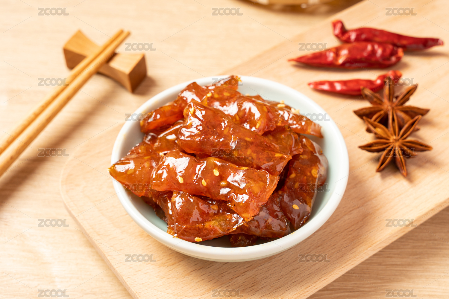 盘子里的香辣牛蹄筋