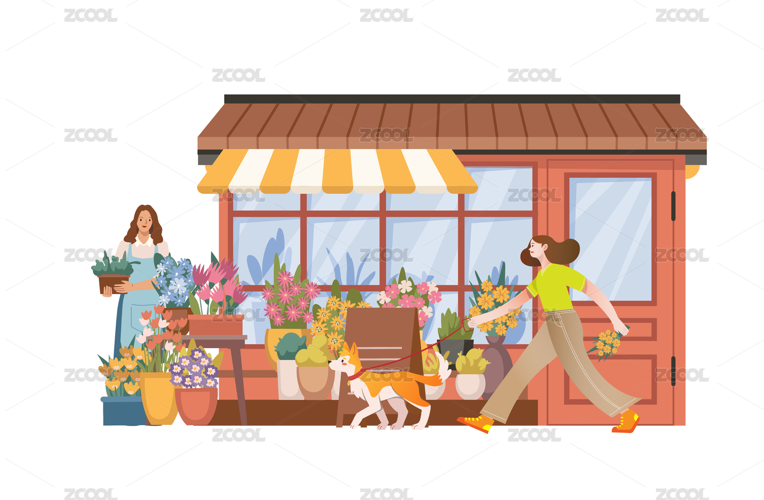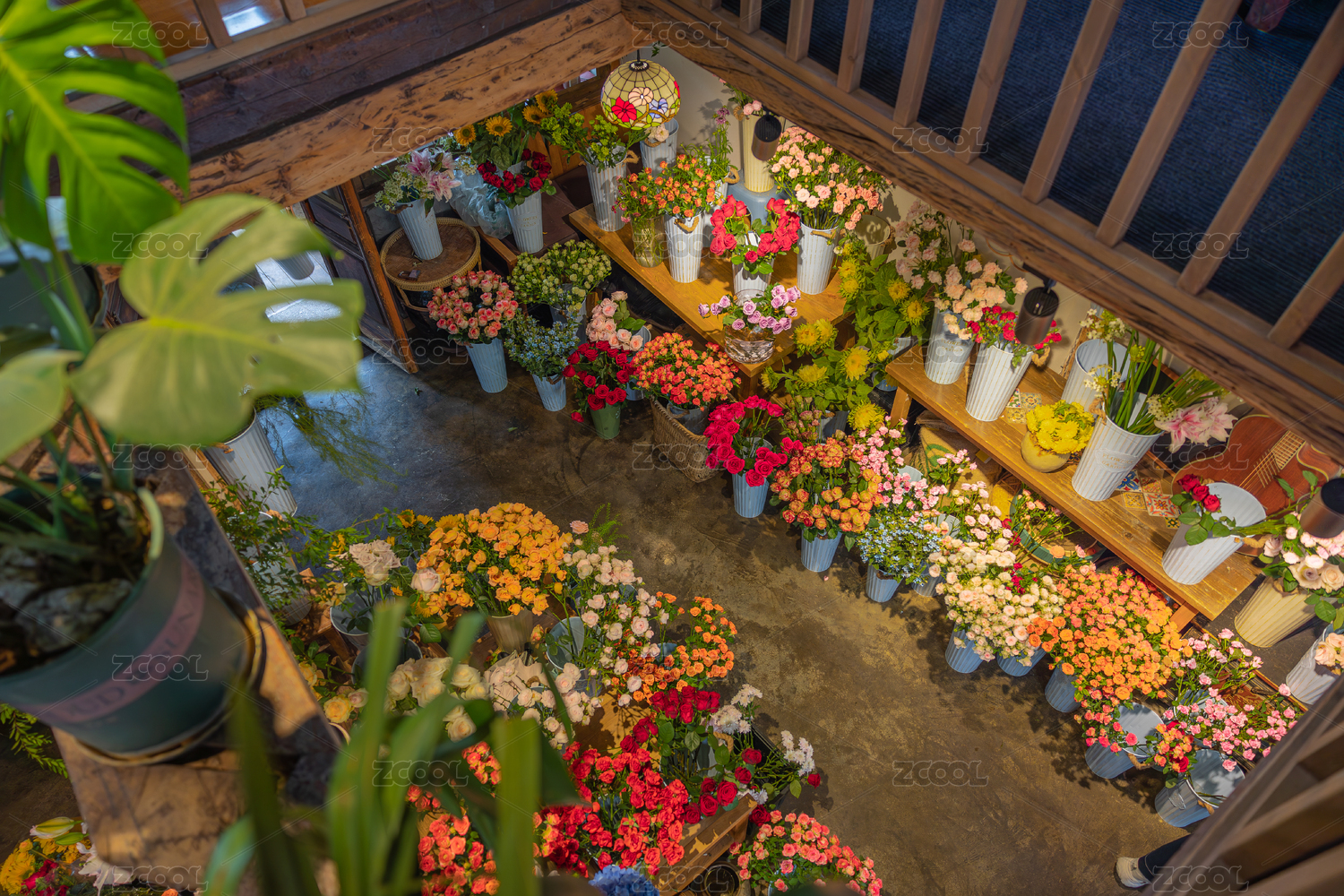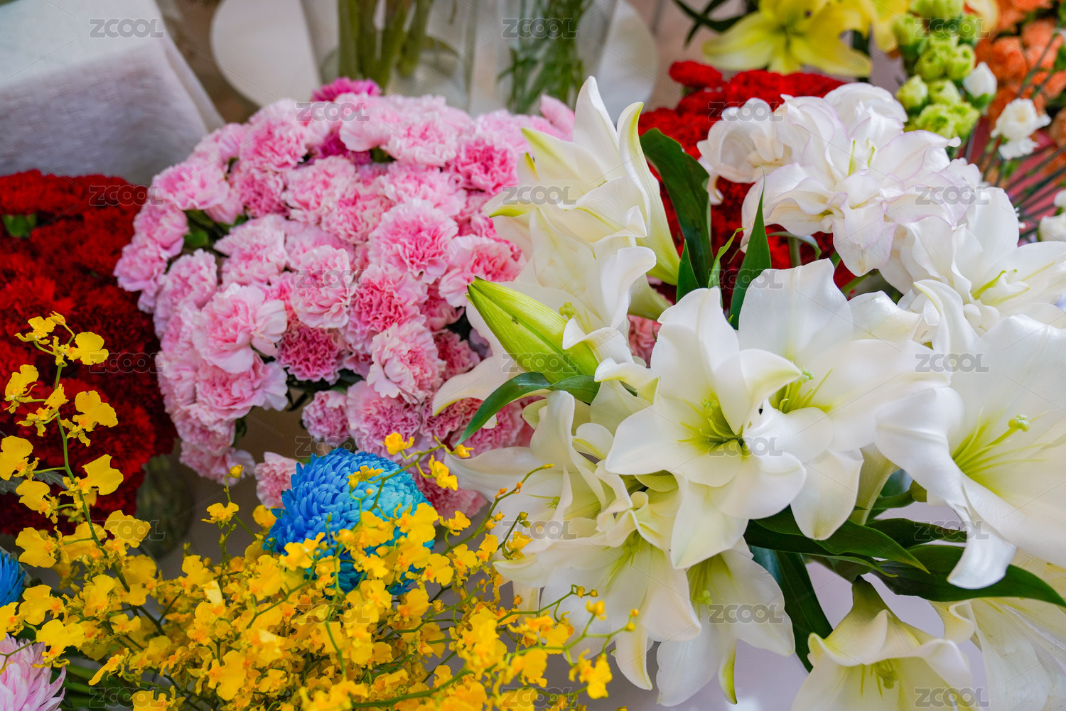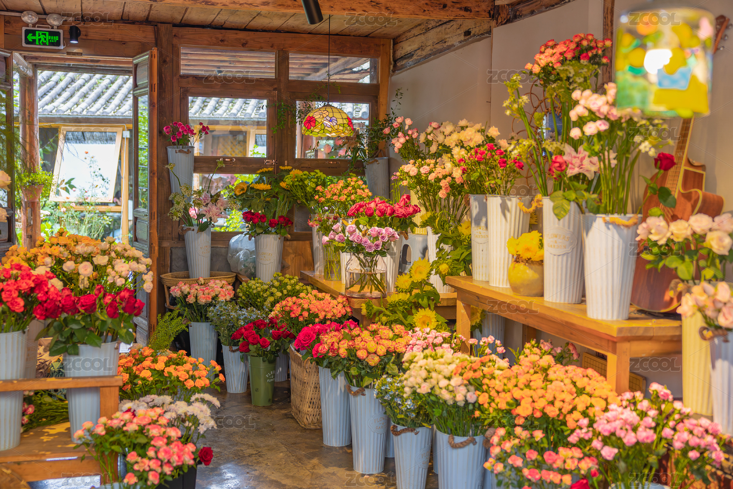 卖花店里售卖的各种颜色的玫瑰花和月季花