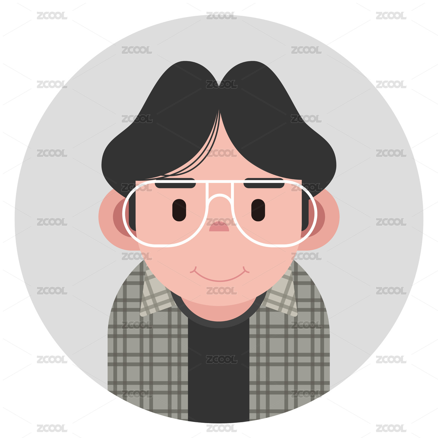留着小分头带着白色眼镜框穿着格子衬衫的男