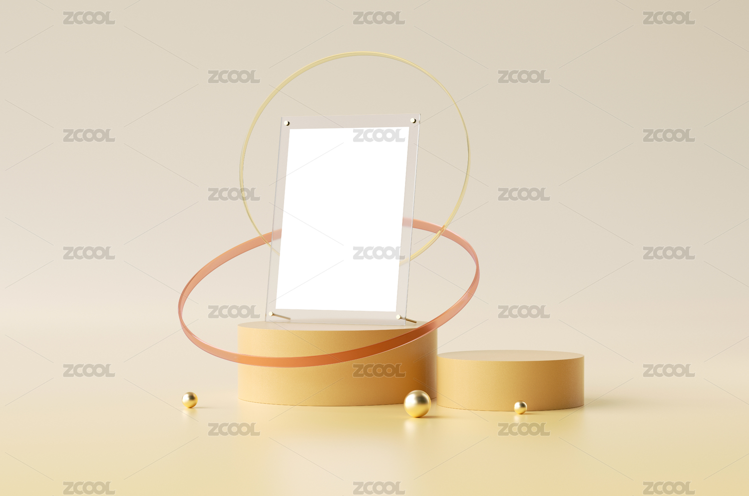 蓝色台子上的证书展示亚克力镜框3D渲染