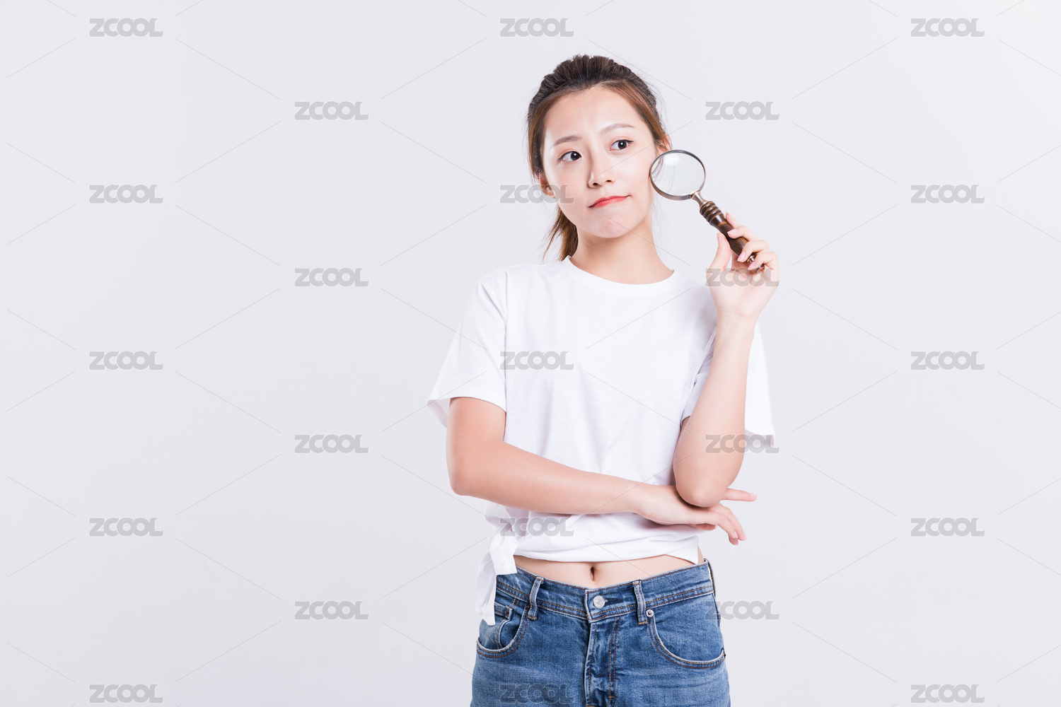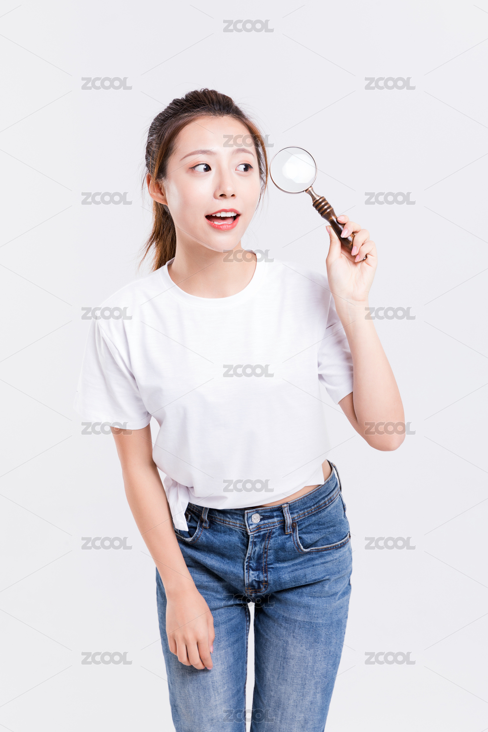 手拿放大镜探索学习的年轻女生