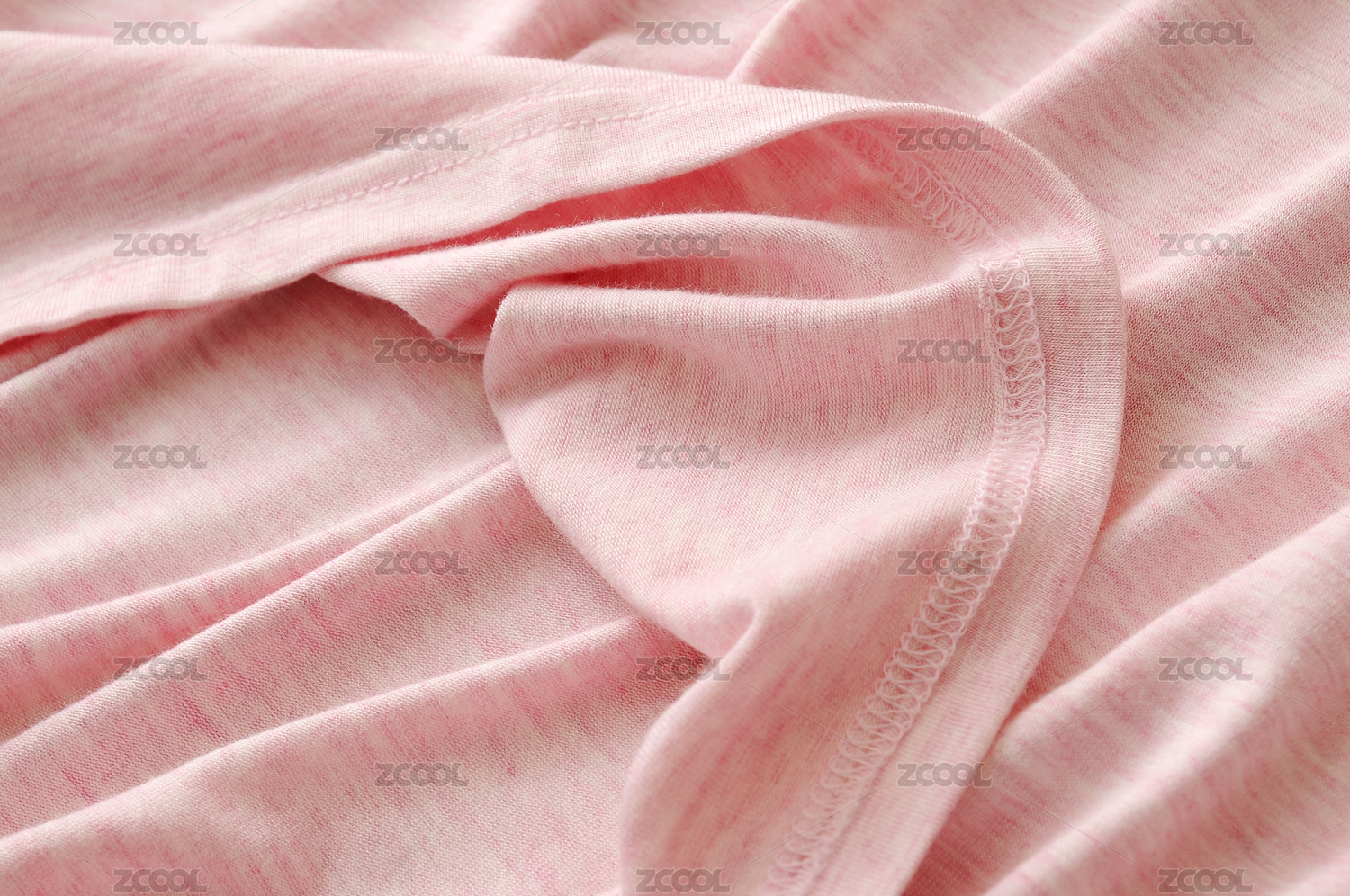 粉色T恤衫下摆收边针脚及面料细节特写