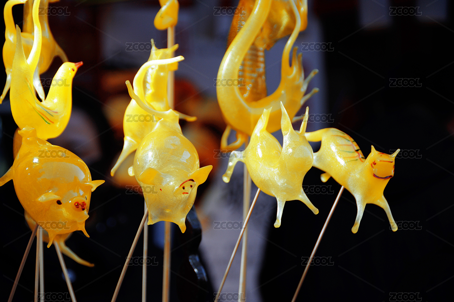 民间传统工艺吹糖人制作的各种动物造型