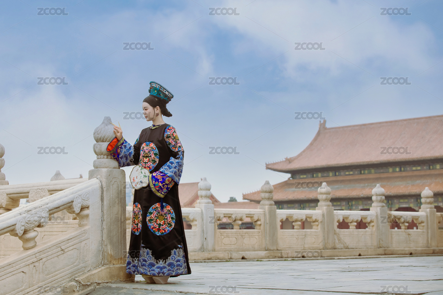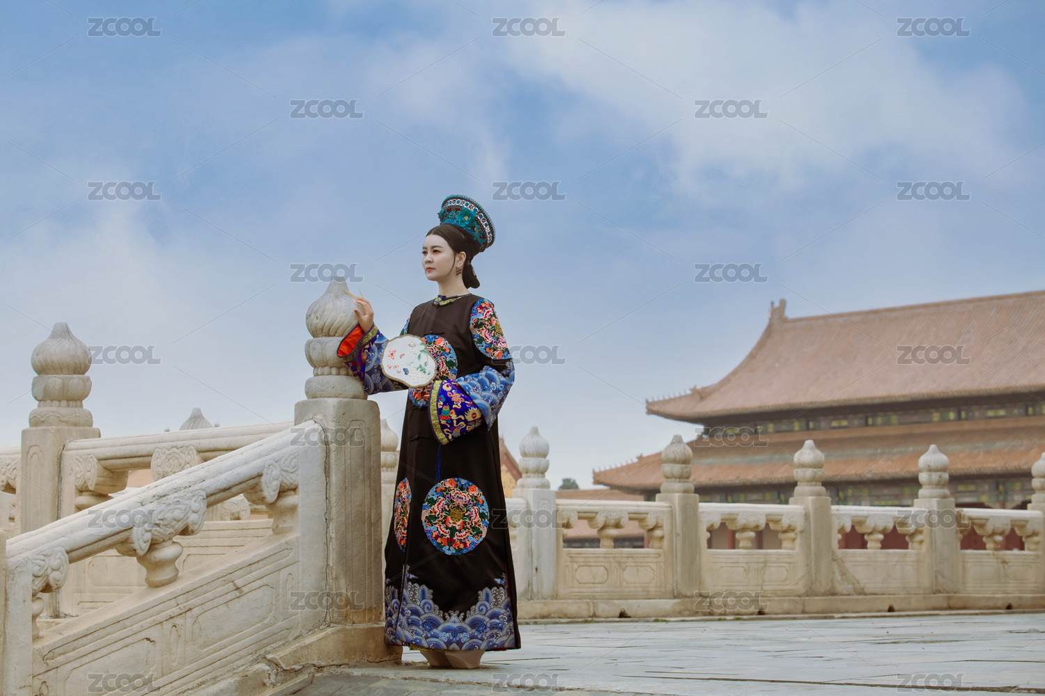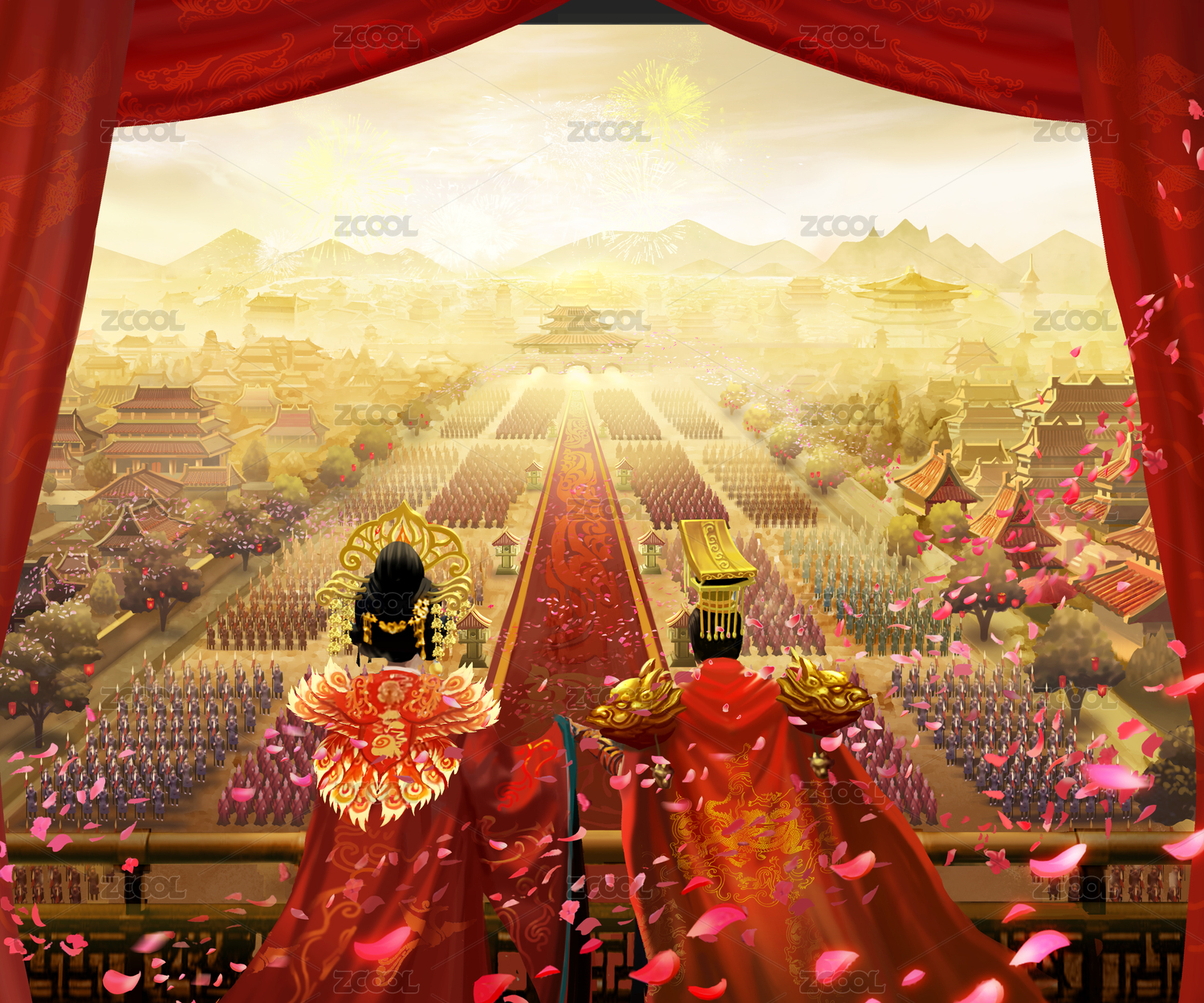 中国风唐朝美人牡丹祥云青山月亮国潮插画