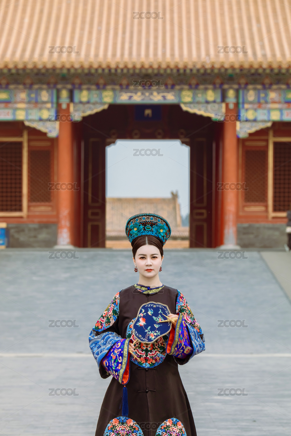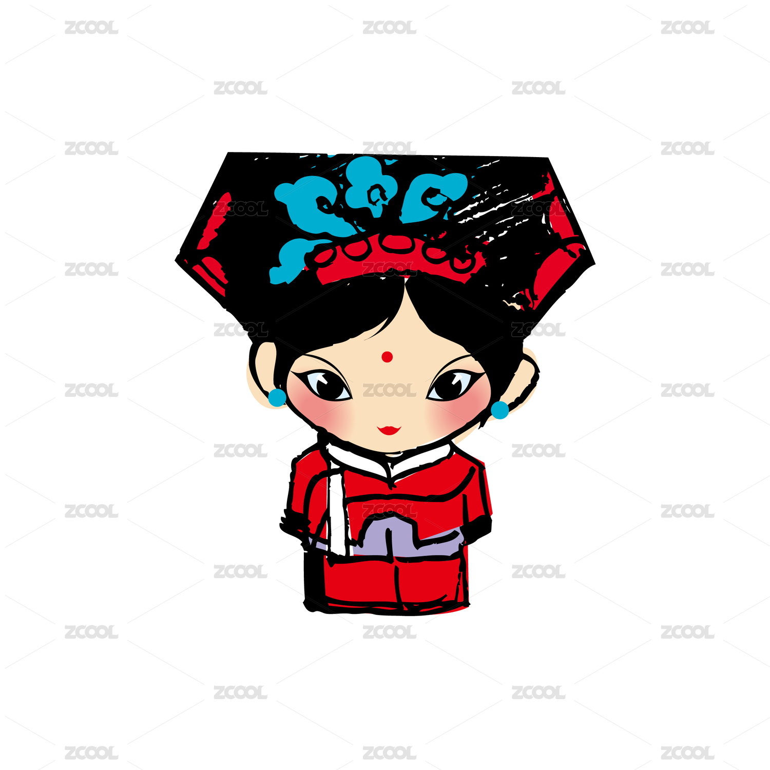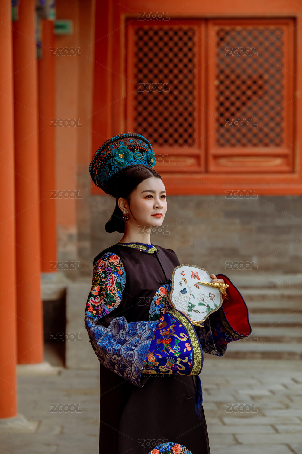 中国风唐朝美人牡丹祥云青山月亮国潮插画