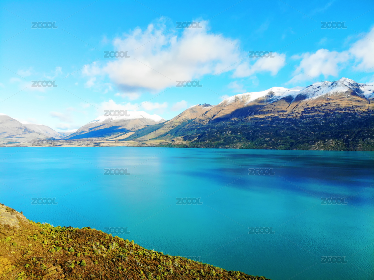 被南阿尔卑斯雪山环绕的瓦卡蒂普湖——新西兰皇后镇航拍