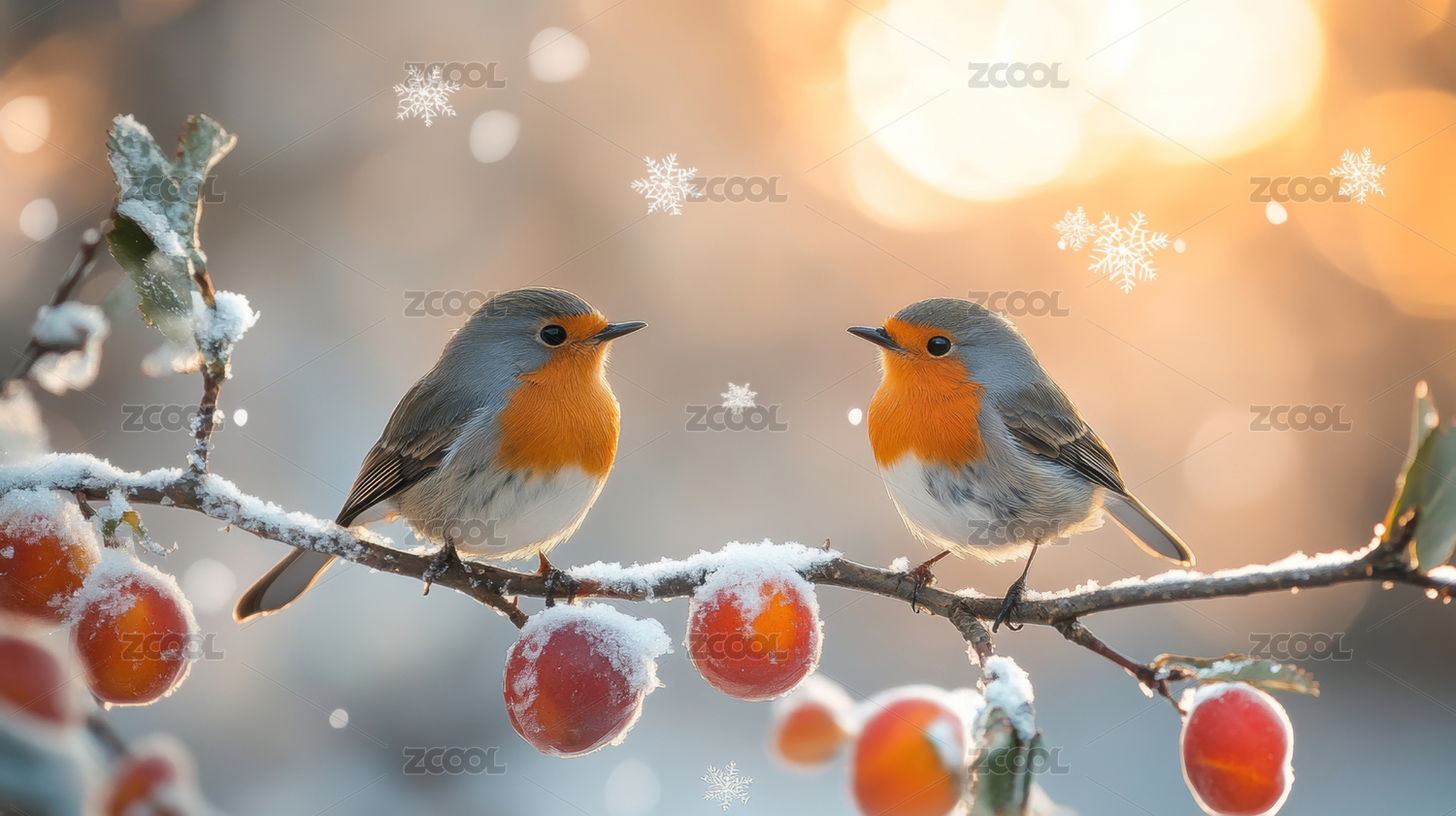 红梅花喜鹊故宫红墙冬天落雪古风插画
