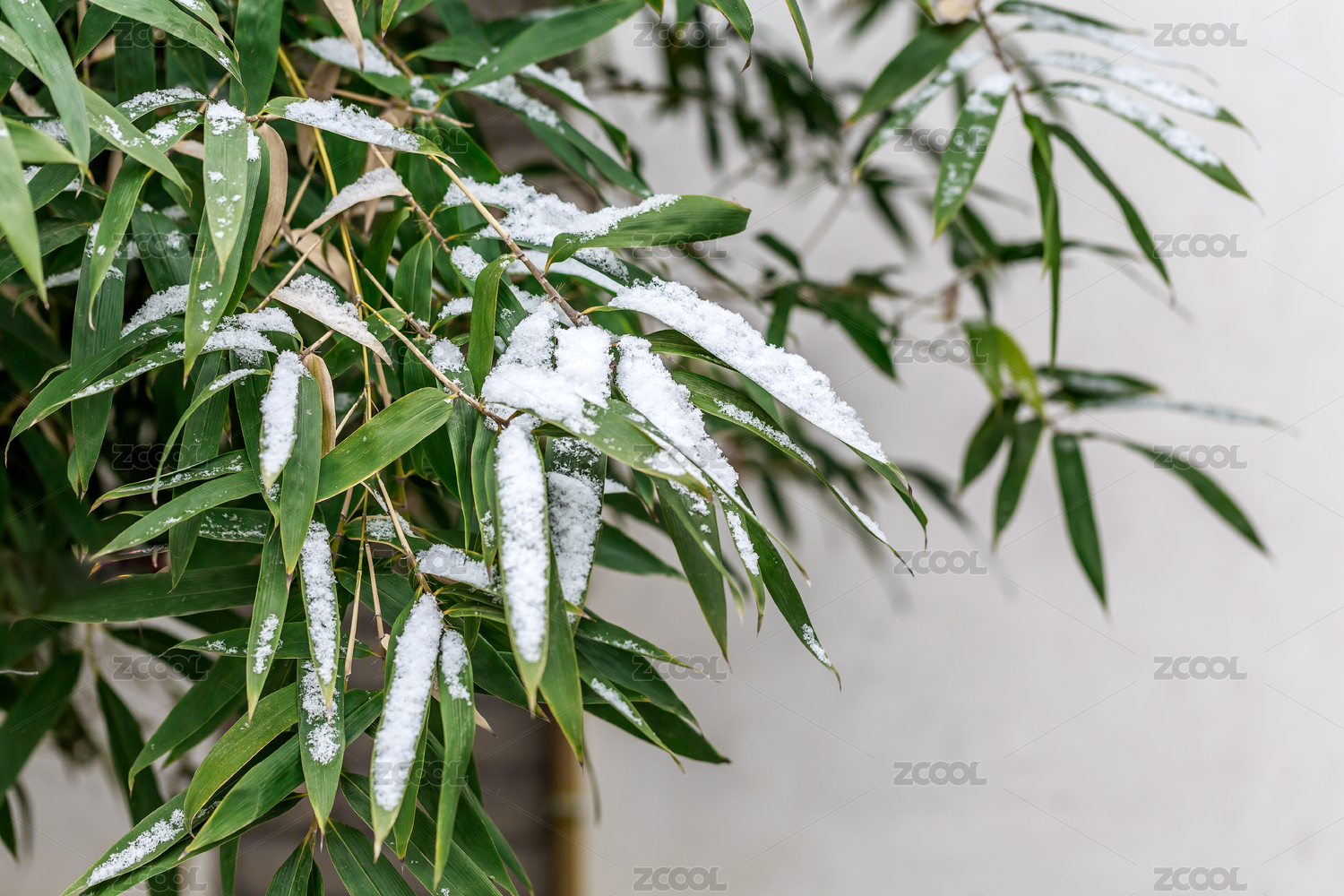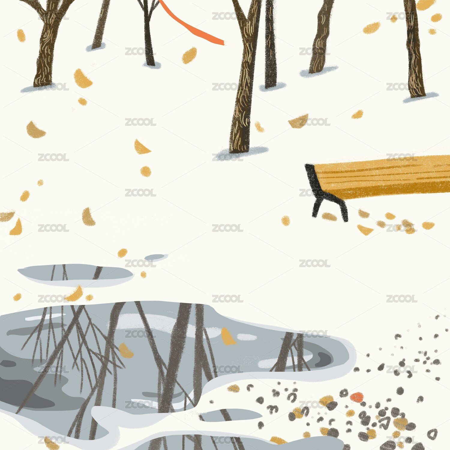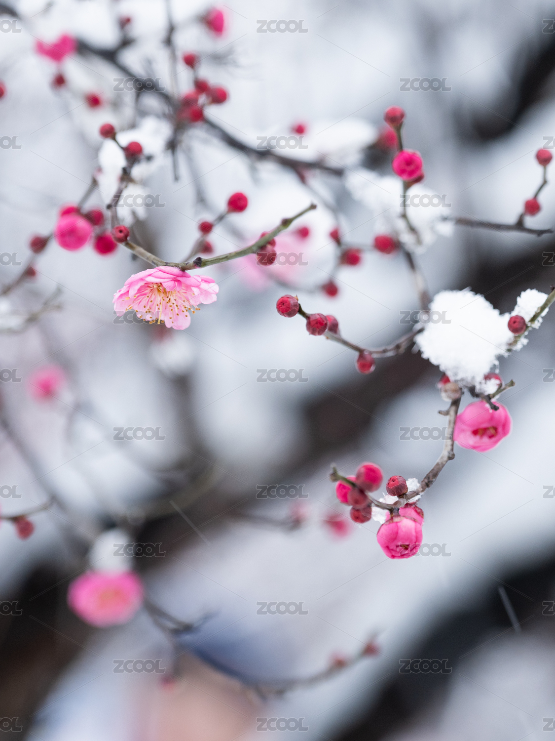 缓缓下落雪与梅花树枝蓝色卡通插画