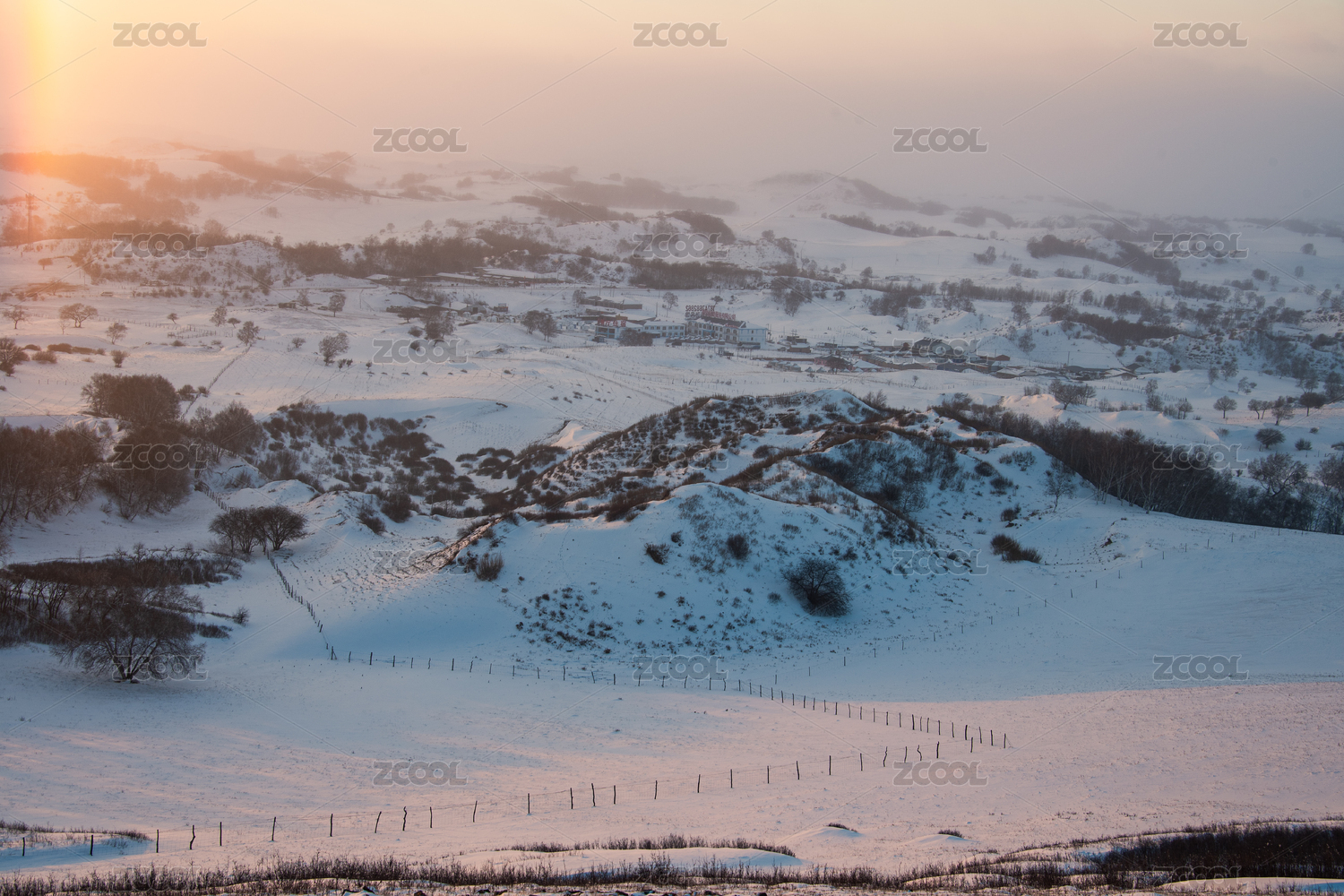 山东枣庄山亭区兴隆庄石板房古村落雪景