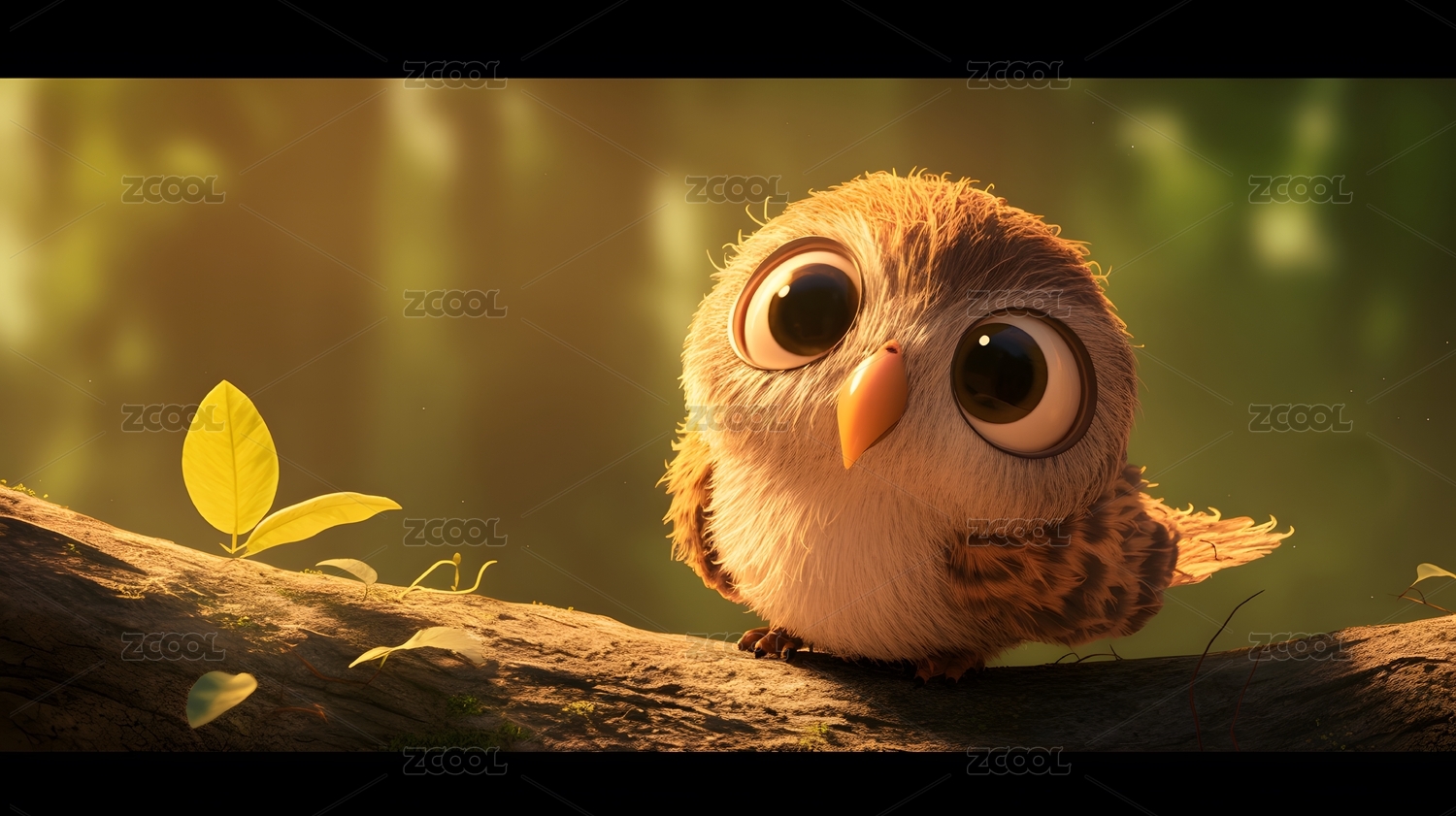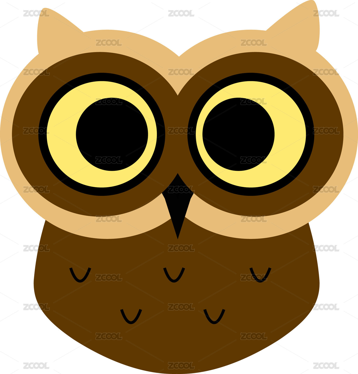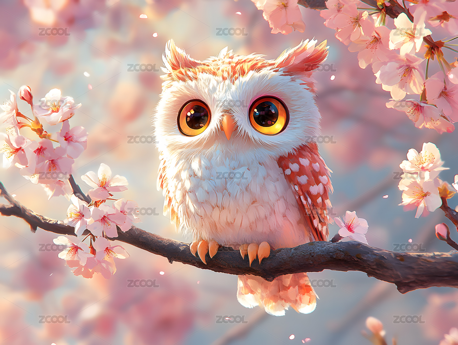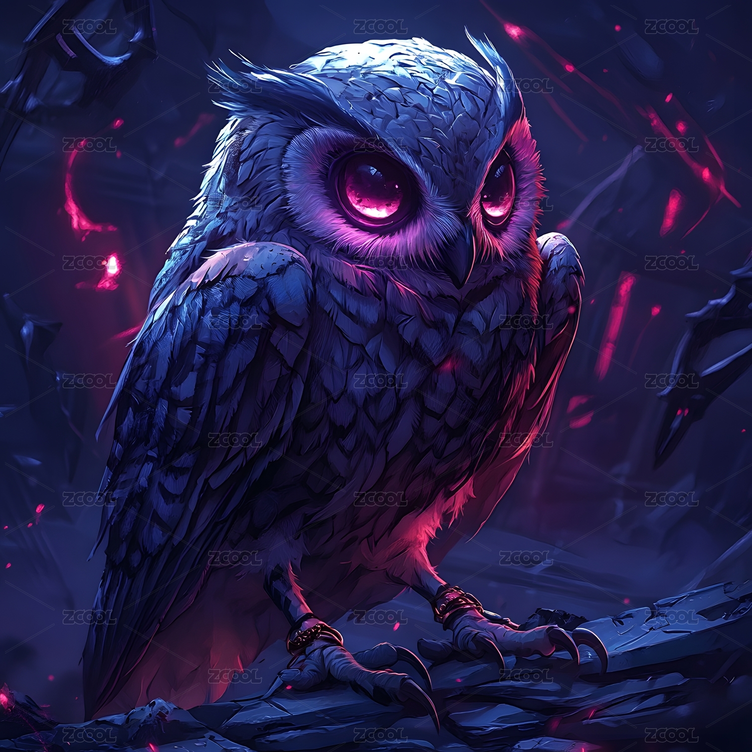 手绘卡通夜晚星空下花丛中的猫头鹰插画