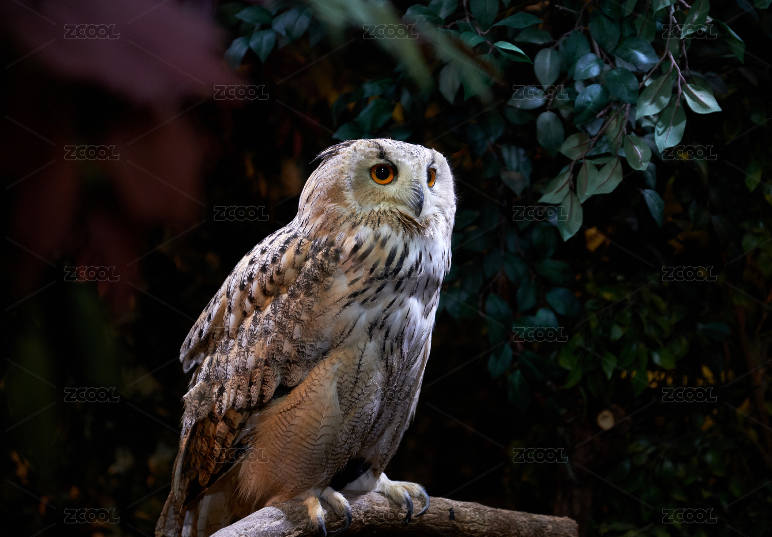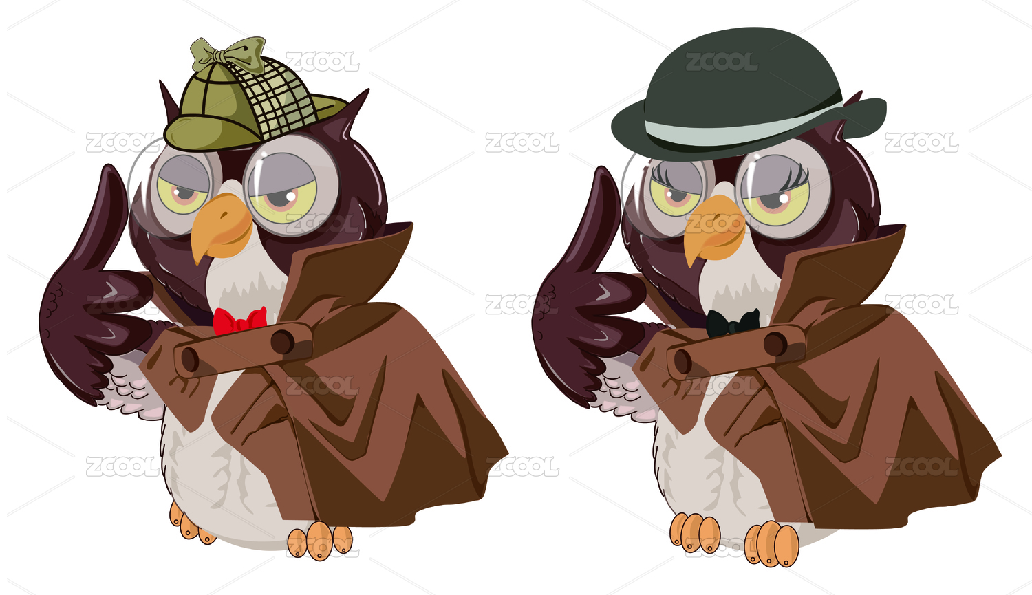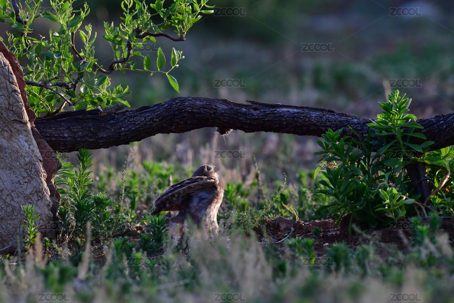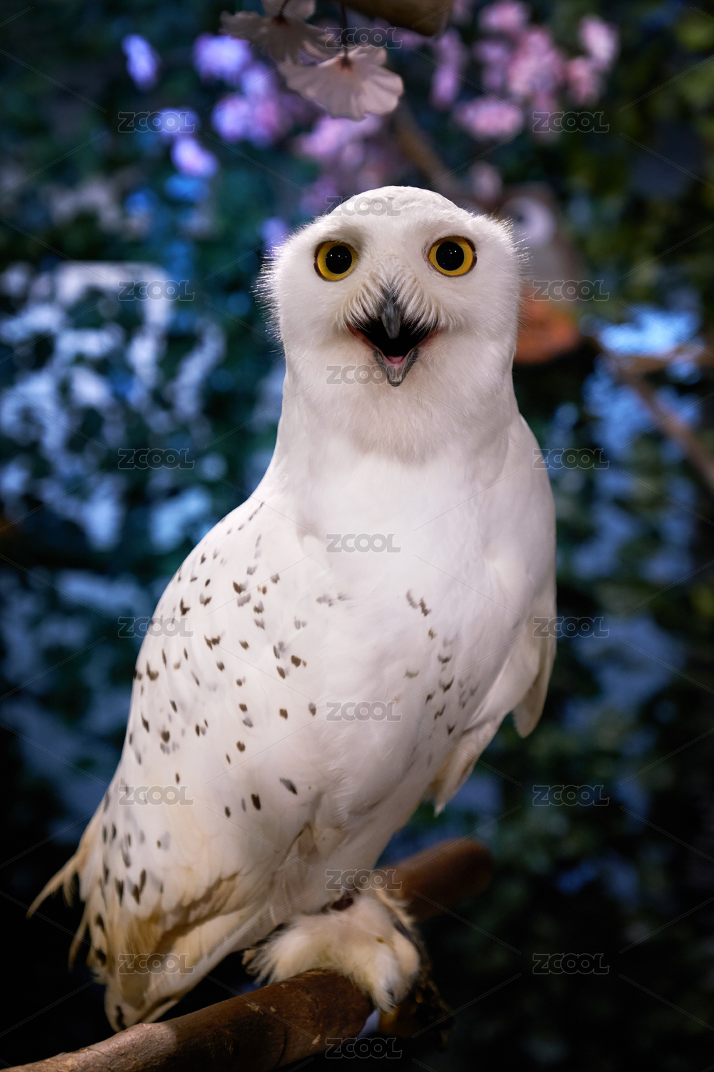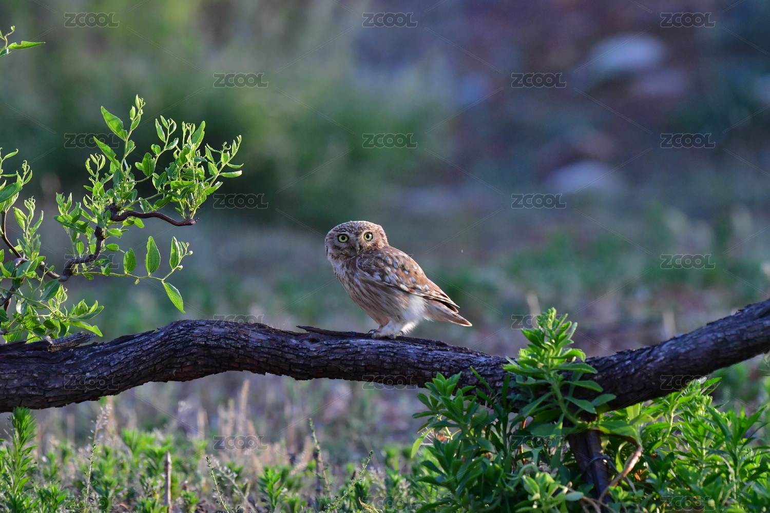 手绘卡通夜晚星空下花丛中的猫头鹰插画