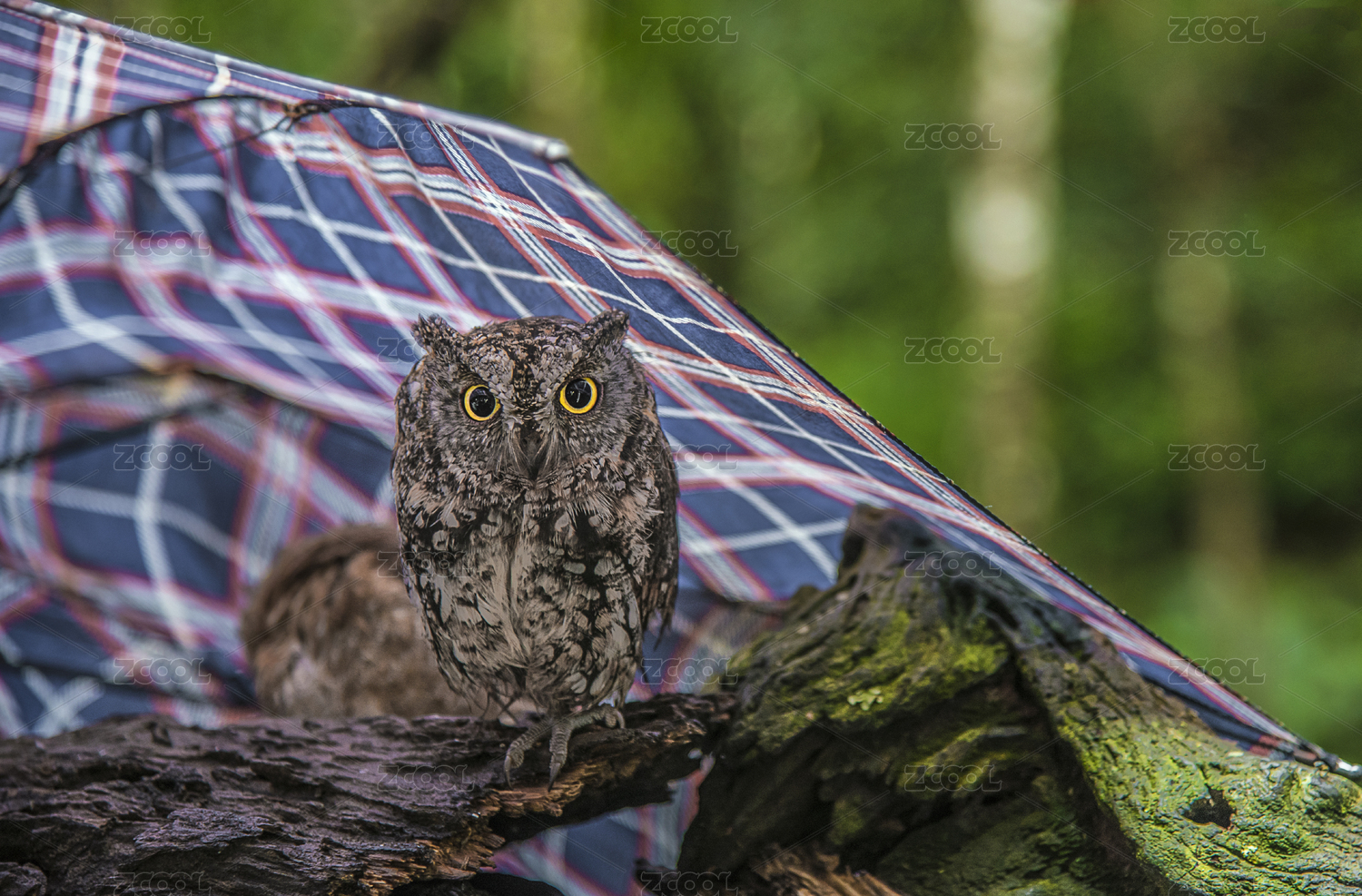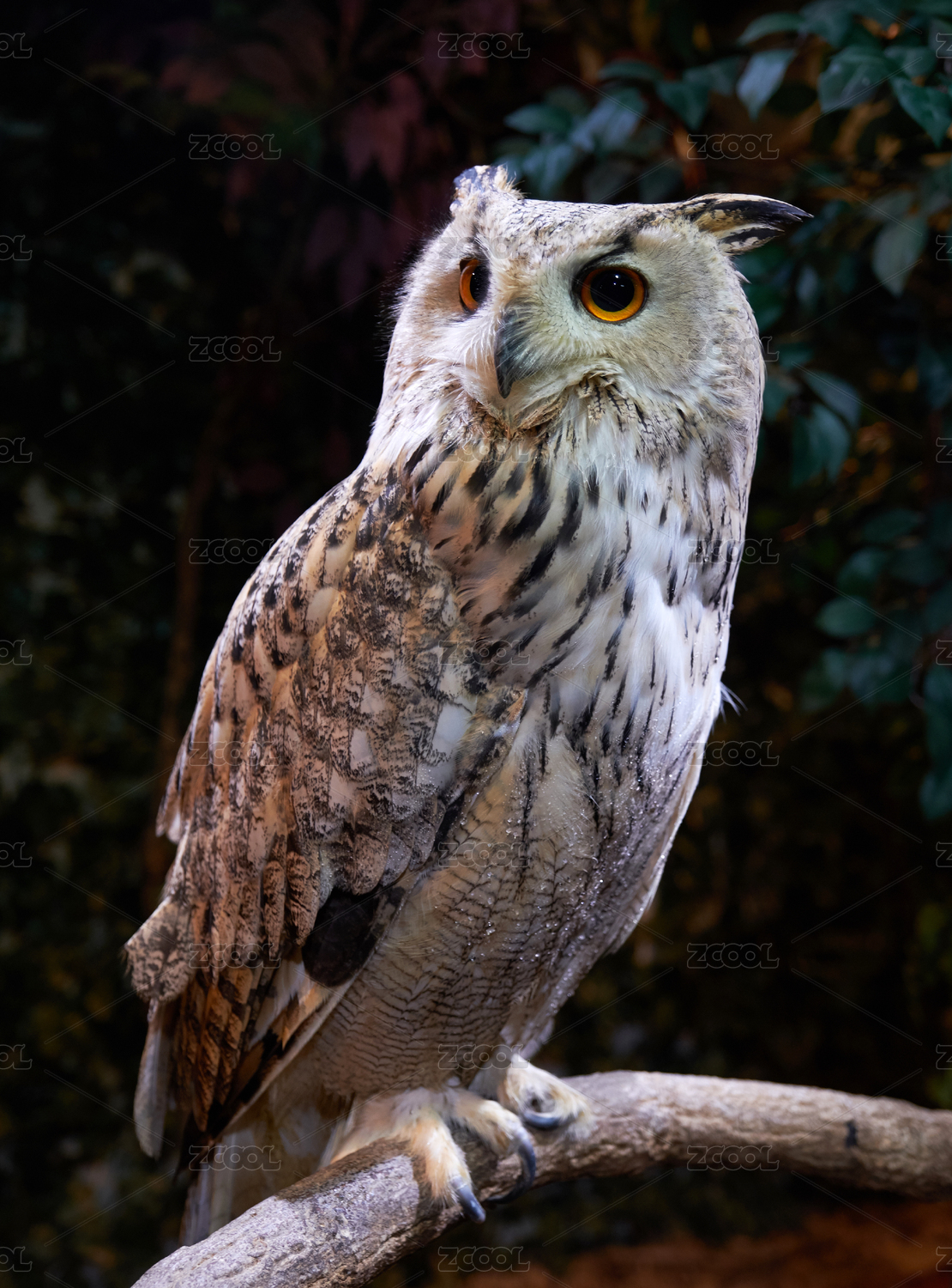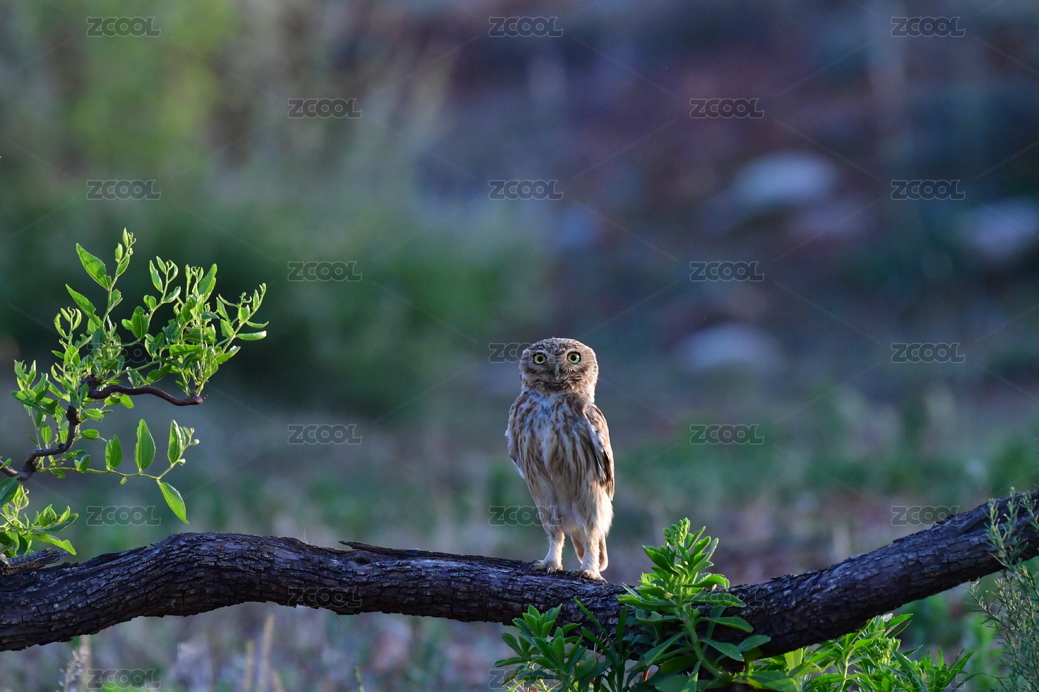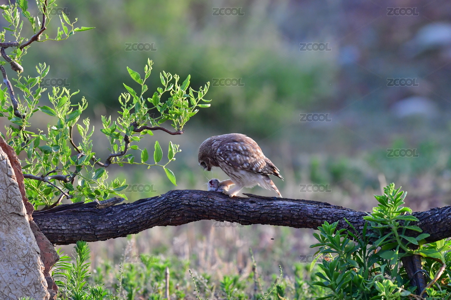 手绘卡通夜晚星空下花丛中的猫头鹰插画