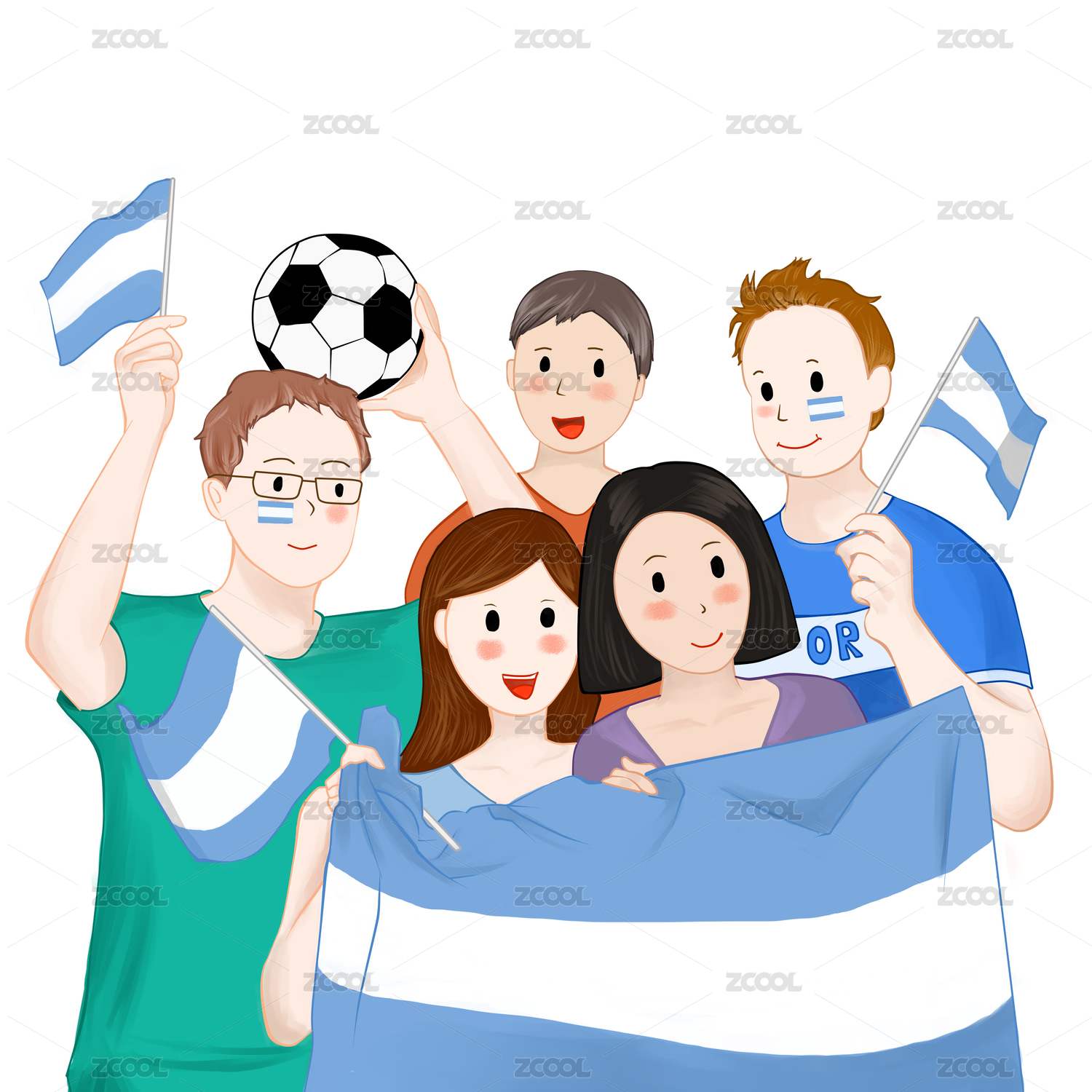 阿根廷足球迷少年举着国旗为世界杯喝彩庆祝插画