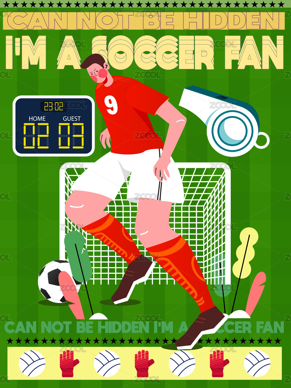 球迷足球踢球男孩世界杯欧洲亚洲杯扁平插画