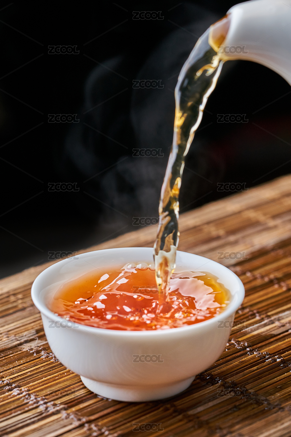 茶道中玻璃茶壶向玻璃杯里倒入热茶