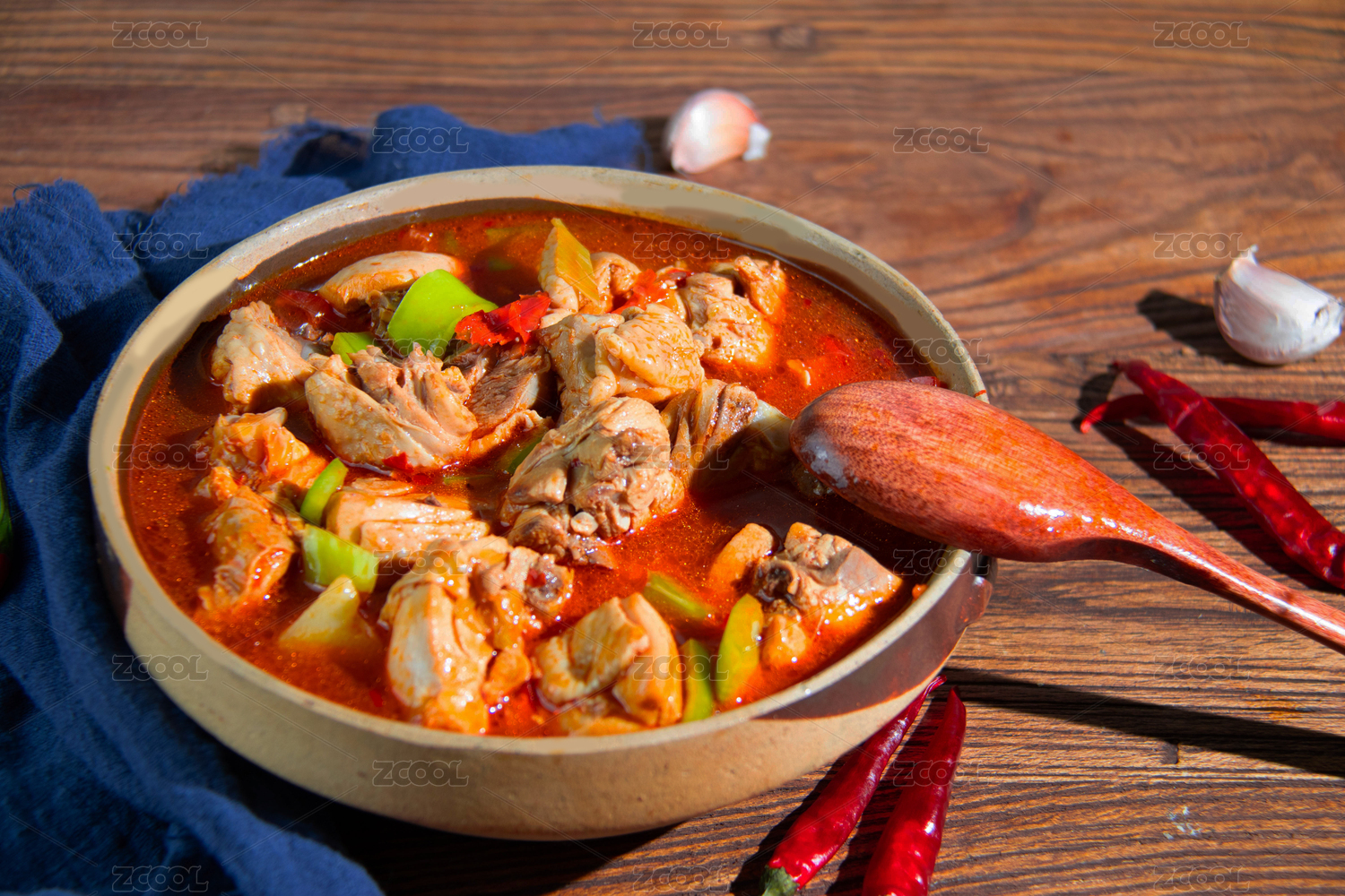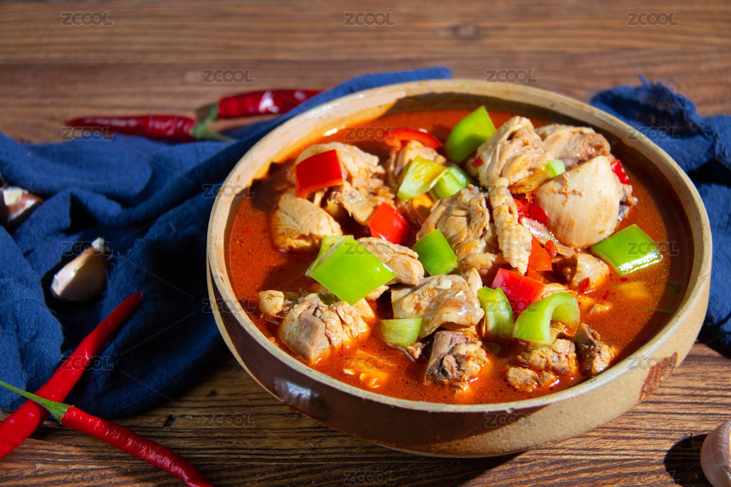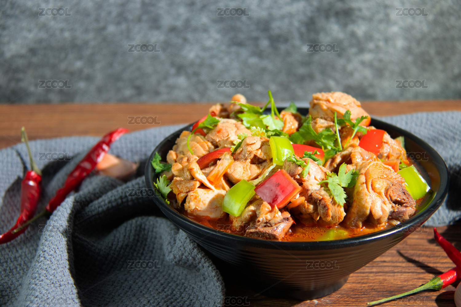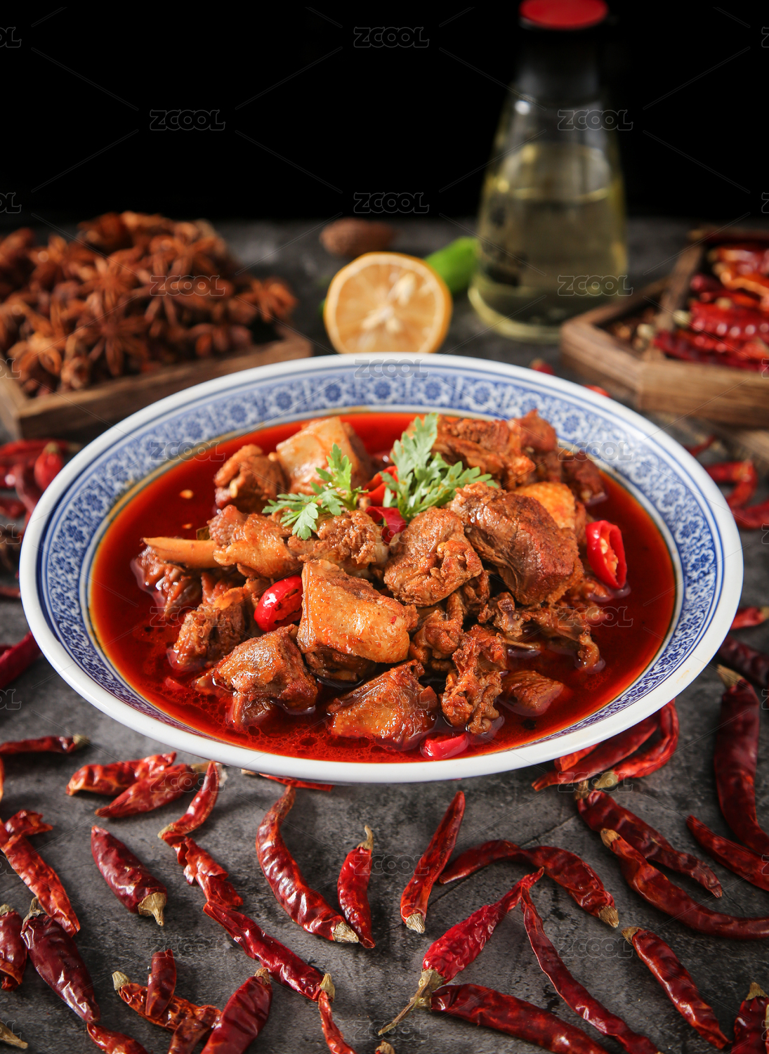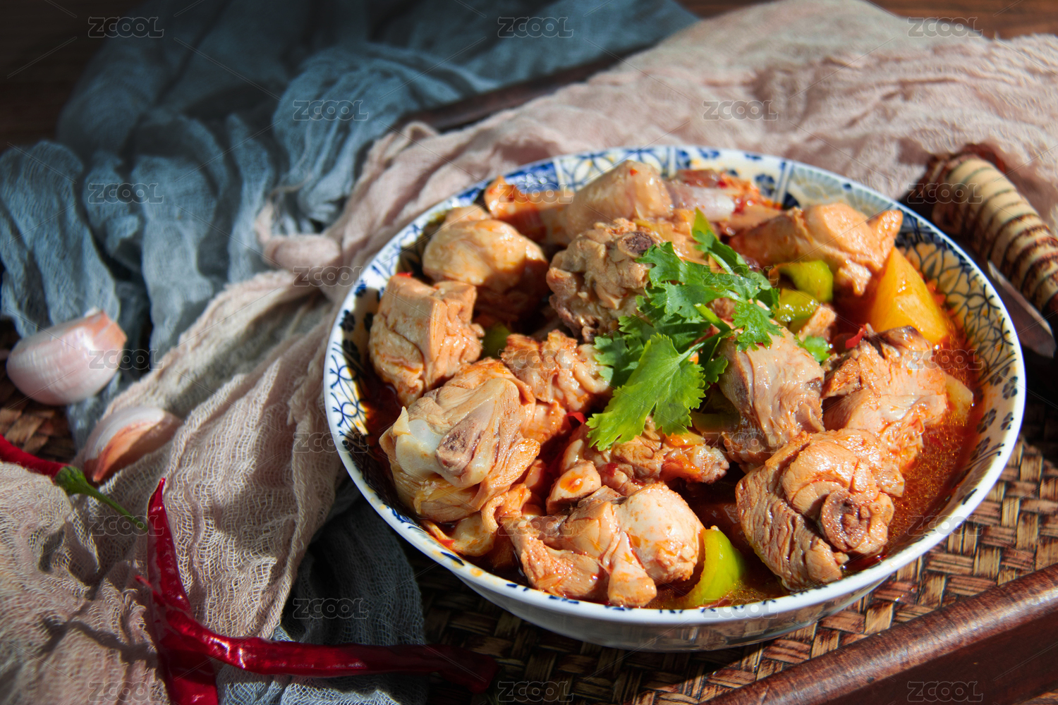 暗色场景下的中国经典家常菜红烧鸡块