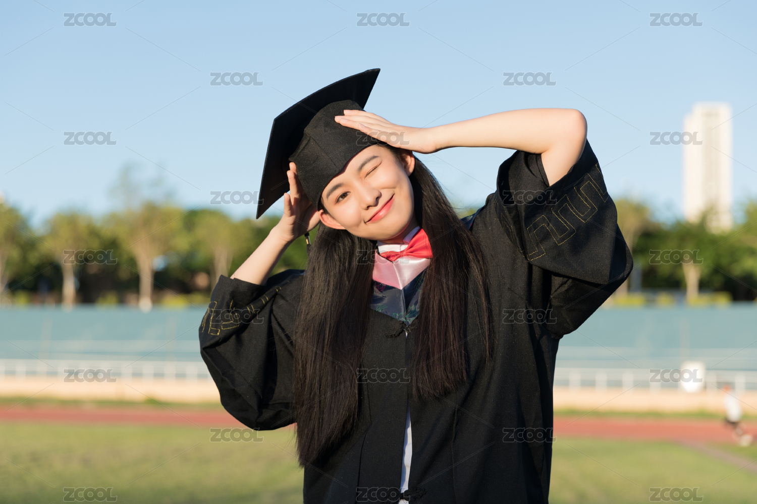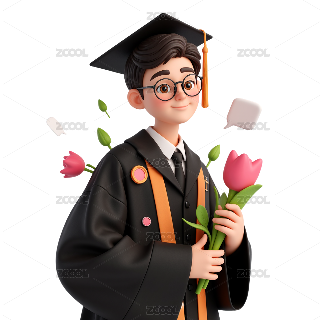 大学生穿学士服的毕业照