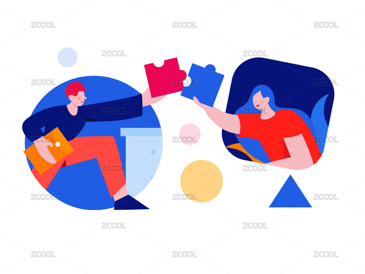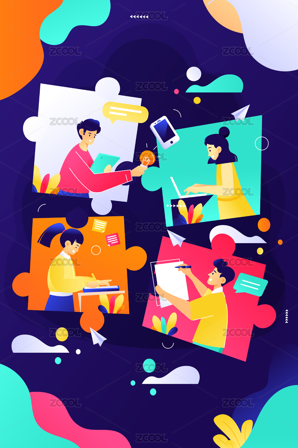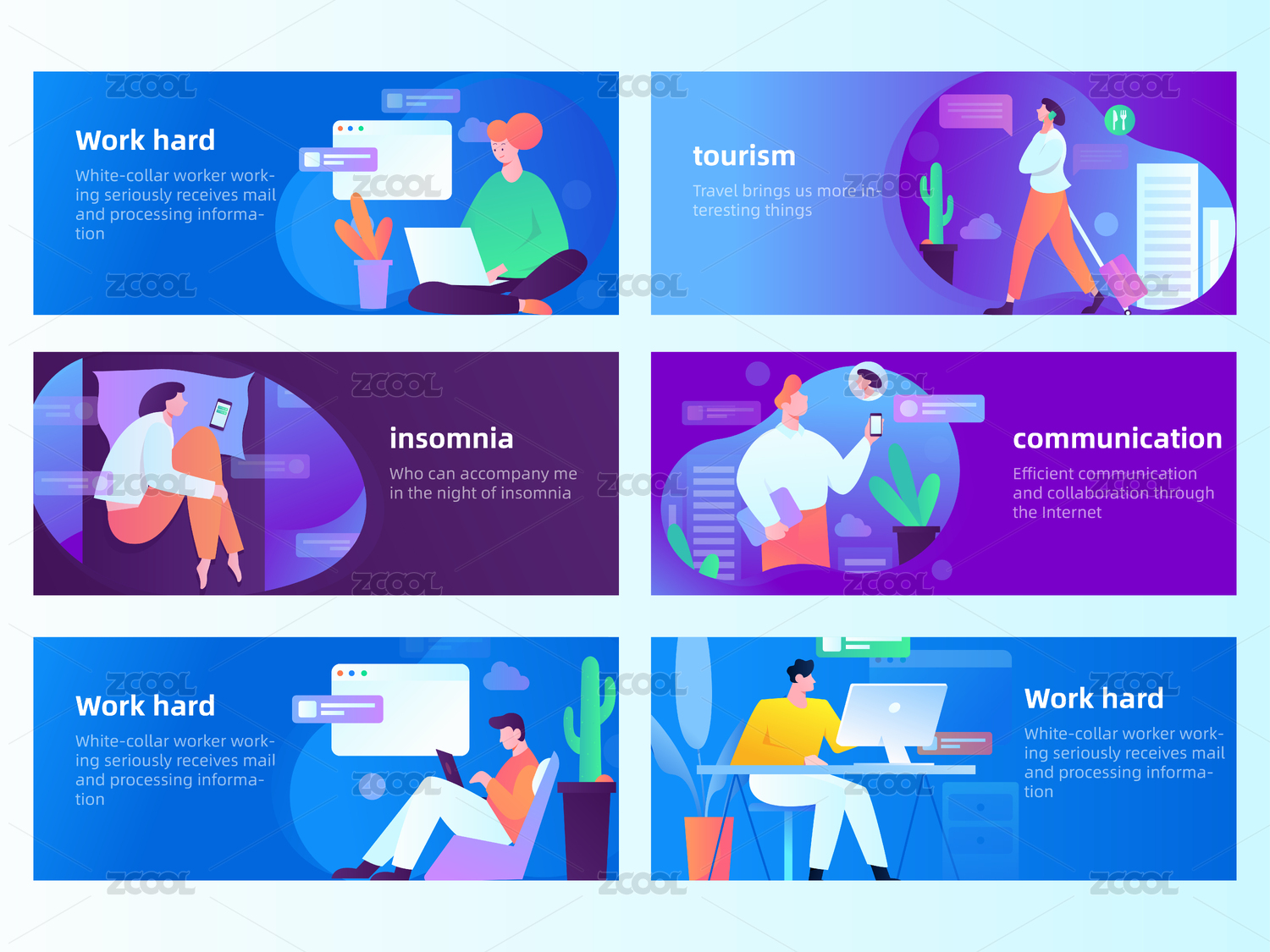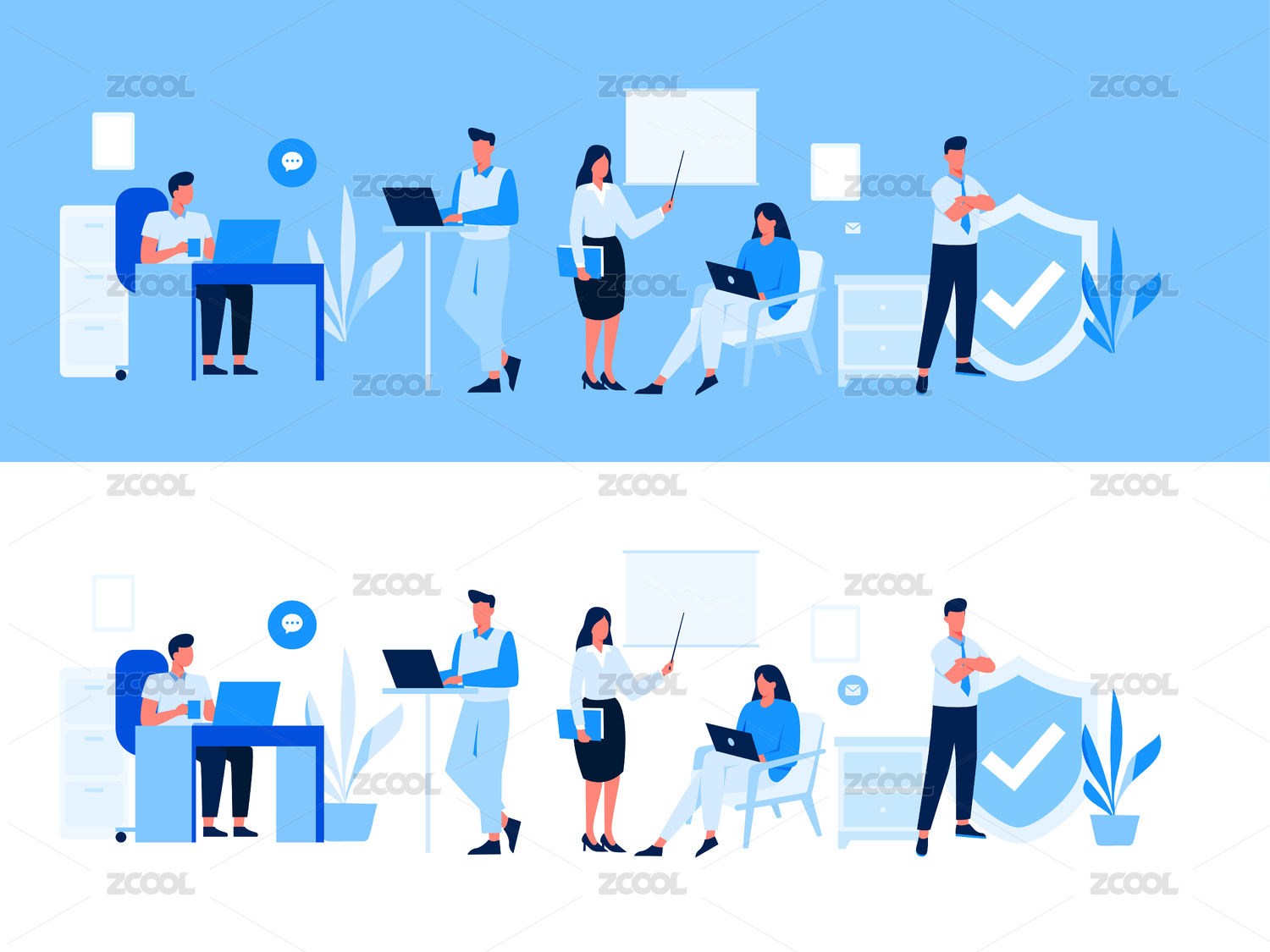 工作中的人物,扁平矢量人物场景创意概念插画