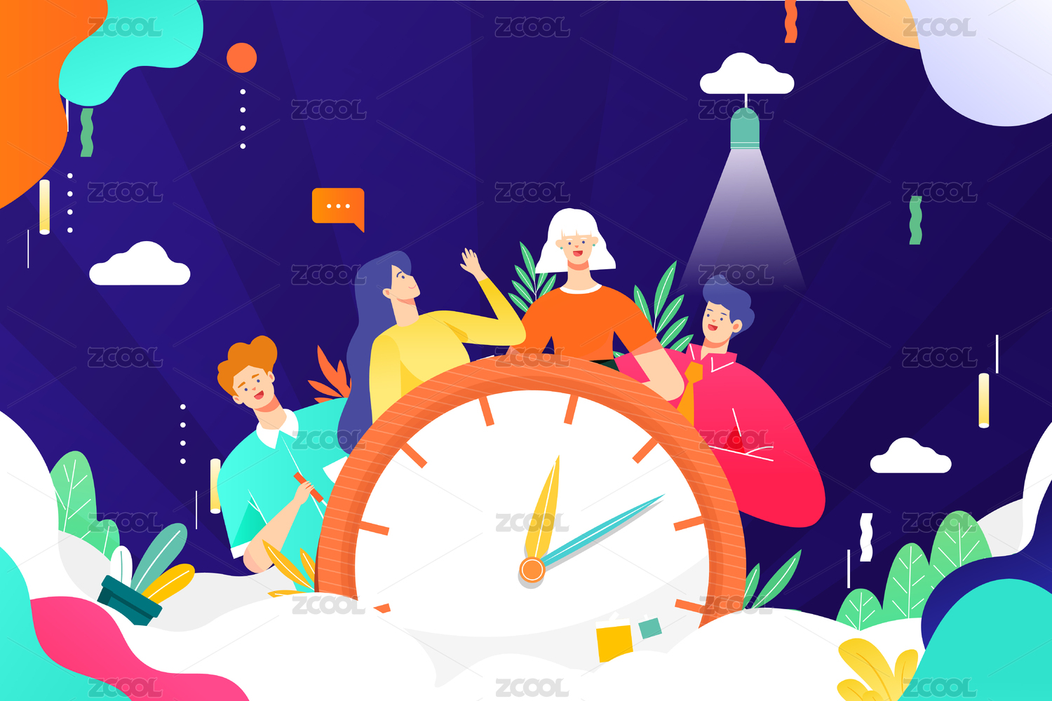 商务团队合作工作效率渐变背景矢量插画