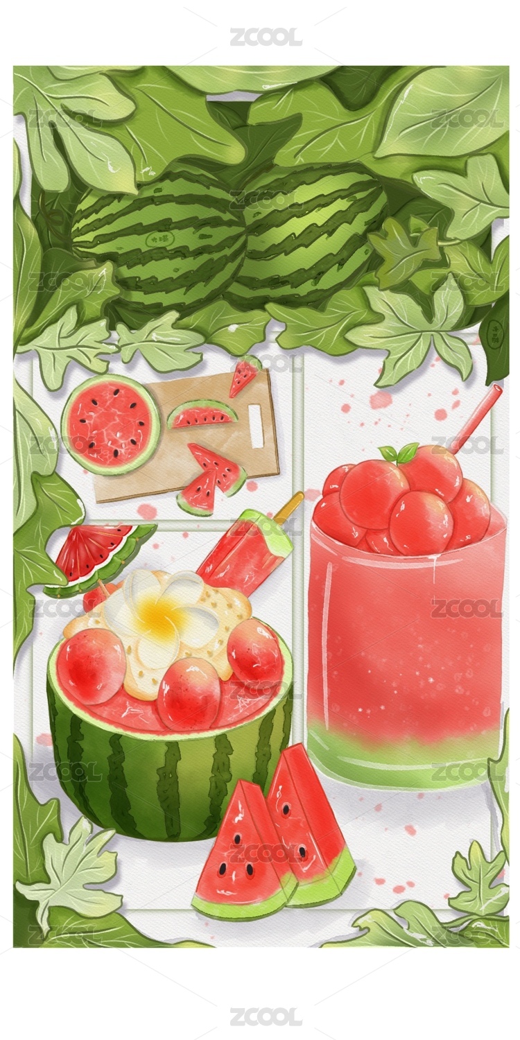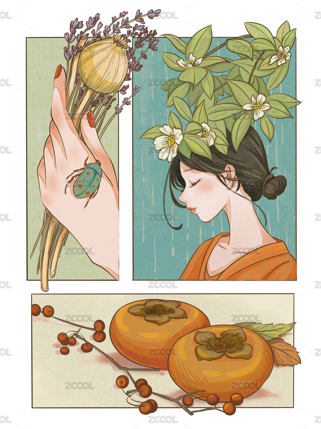 传统二十四节气小暑分镜水彩场景插画荷花西