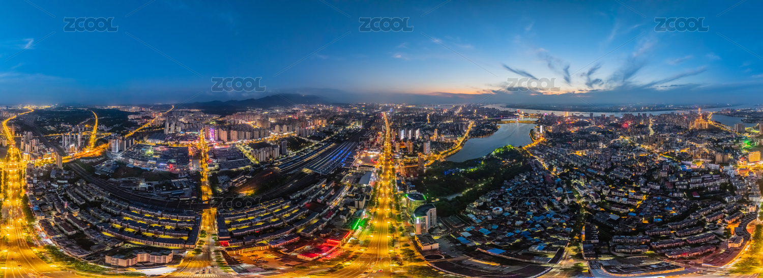 中国江西省九江市720度全景夜晚高楼建筑