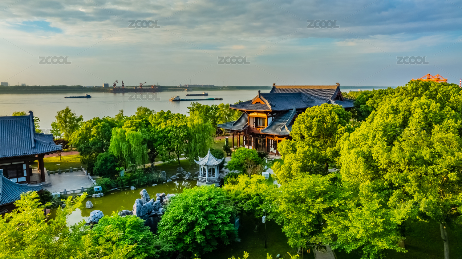 中国江西省九江市长江外滩琵琶亭园林建筑
