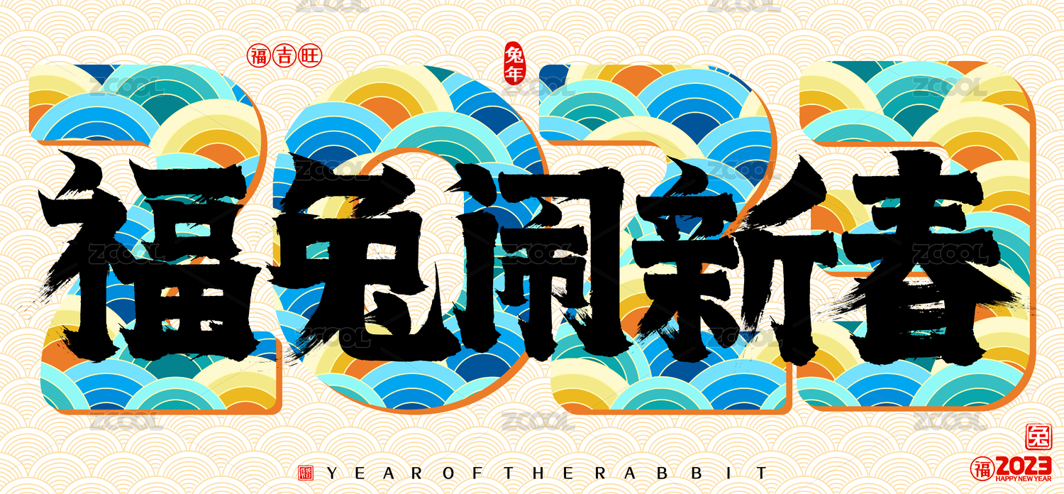 2023兔年福兔闹新春国潮云纹矢量书法字