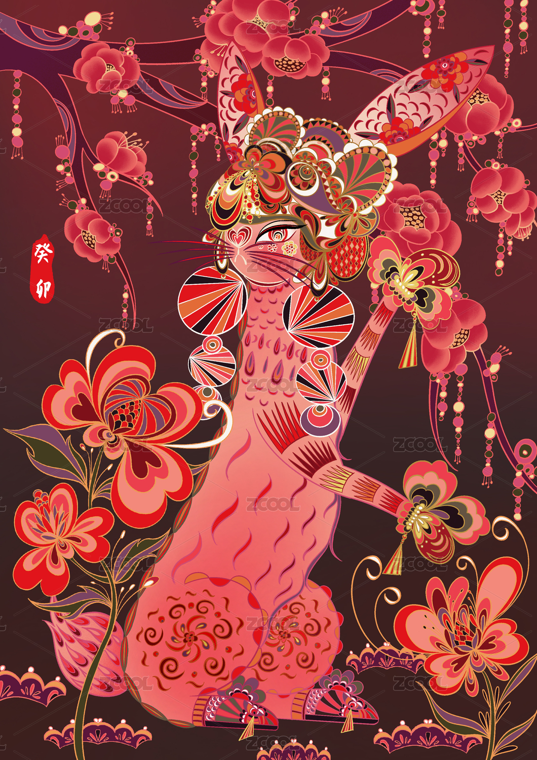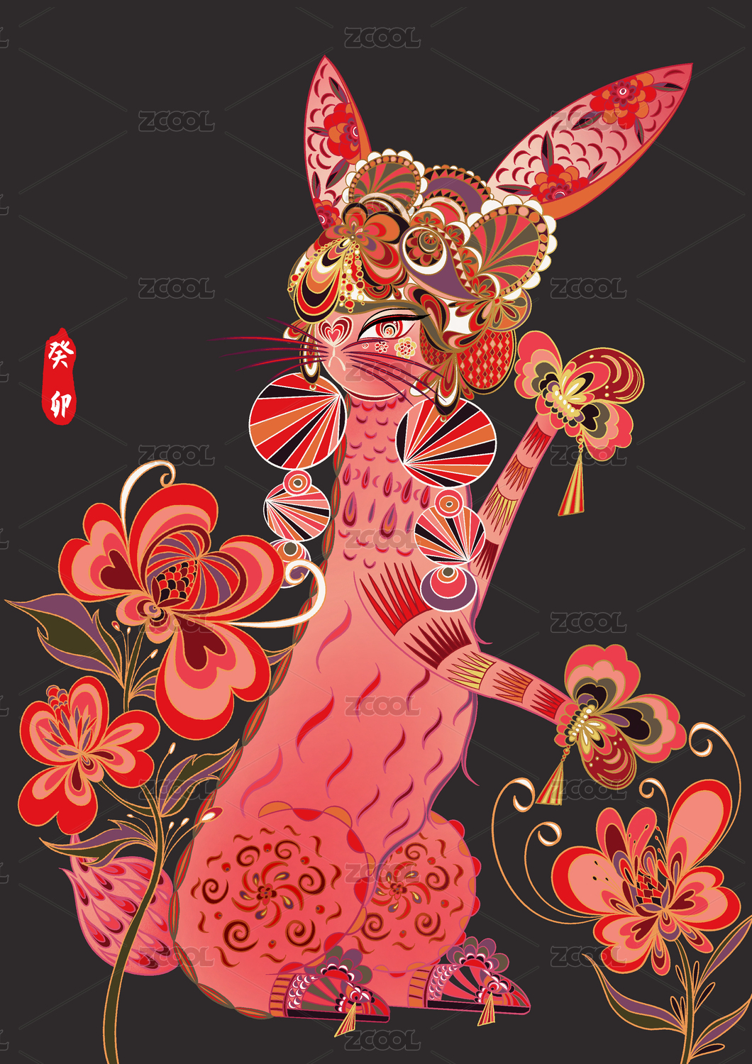兔年春节小兔子抱鱼连年有余插画