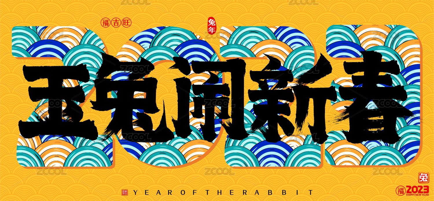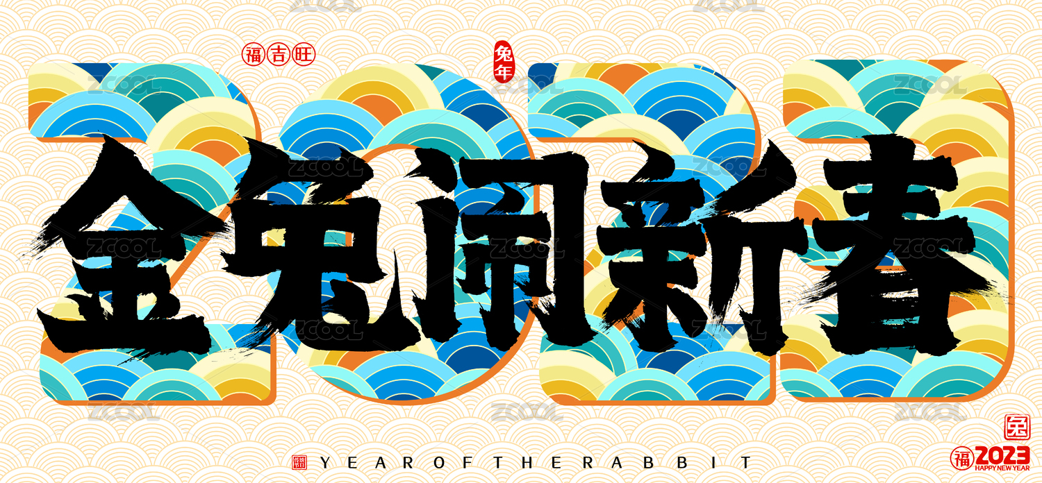 国潮兔年玉兔闹新春2023云纹矢量书法字