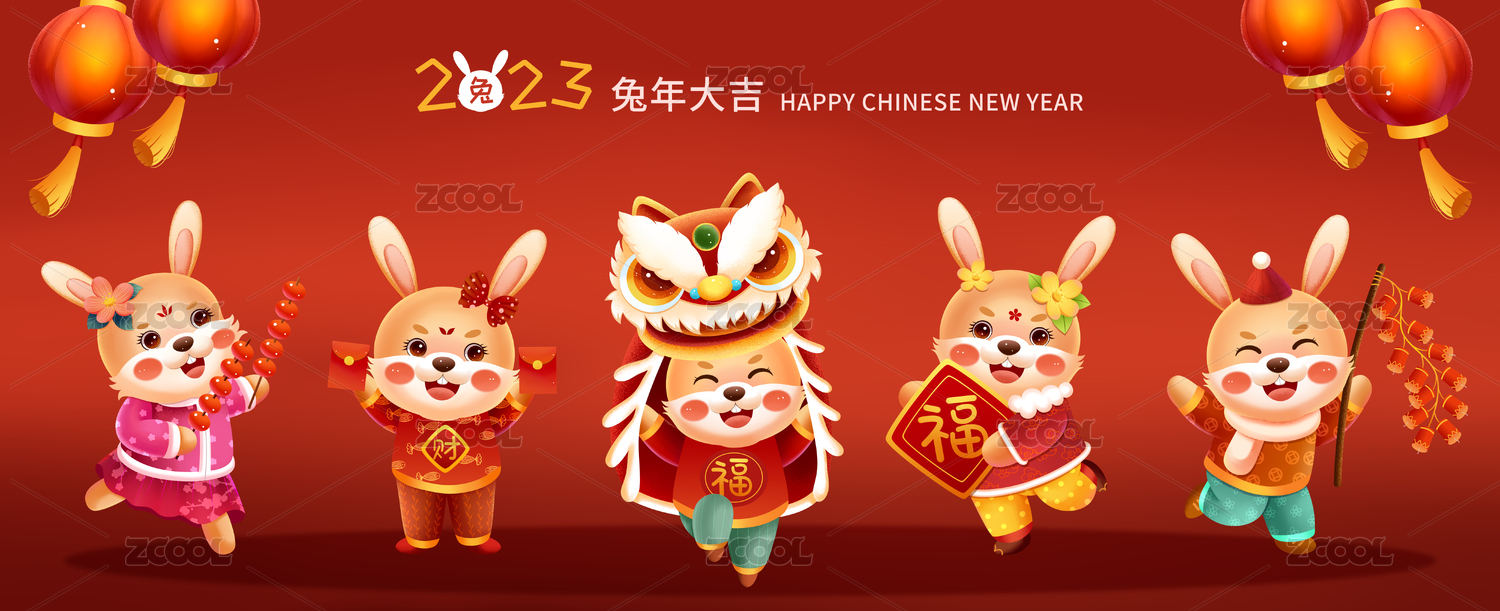 兔年大吉小兔子闹新春插画
