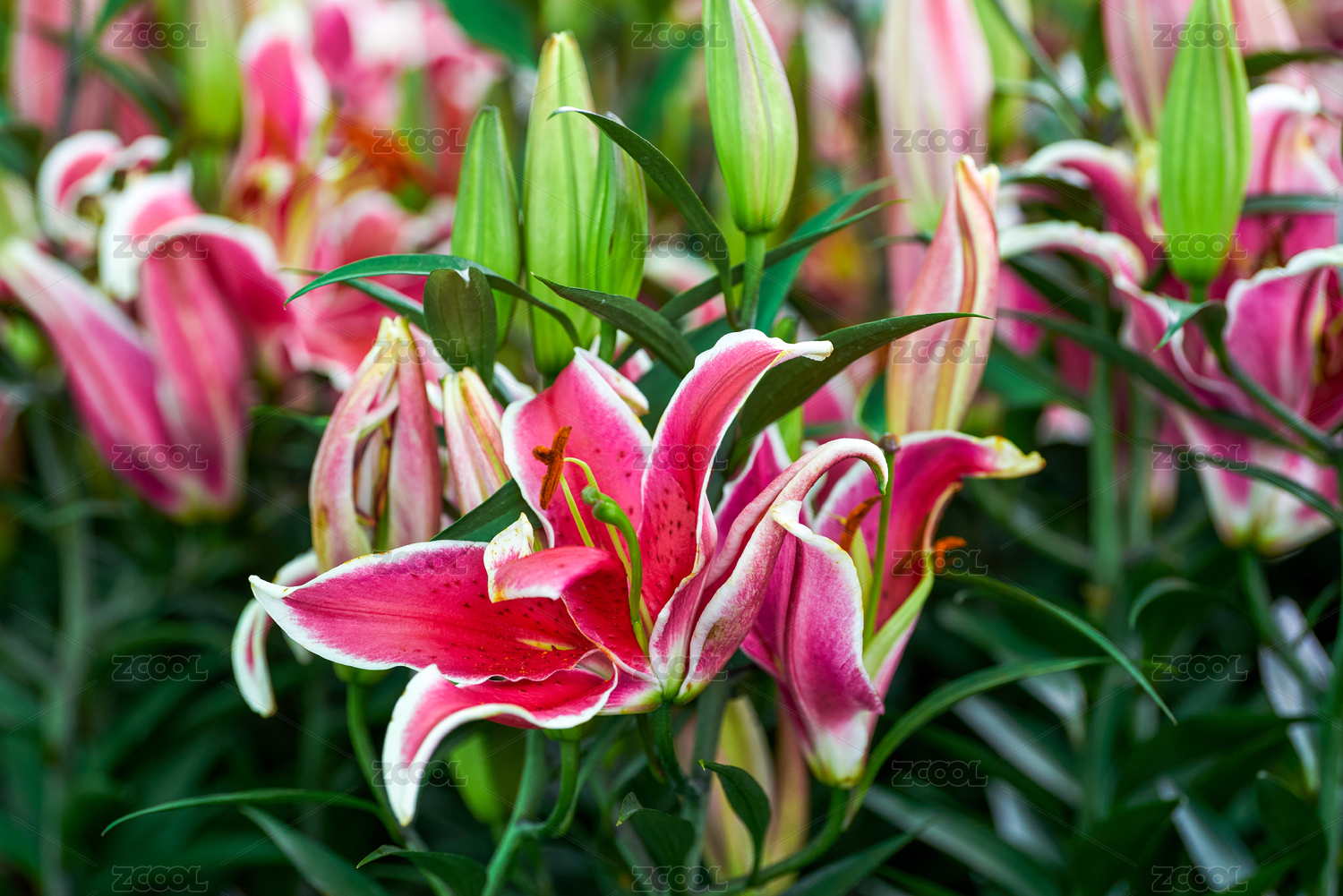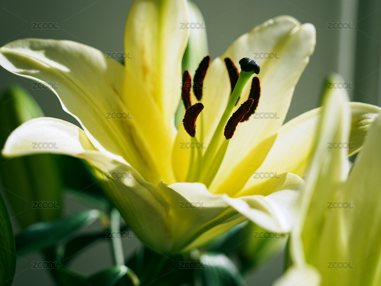 在花瓶中的花束,白百合、绿菊花和康乃馨