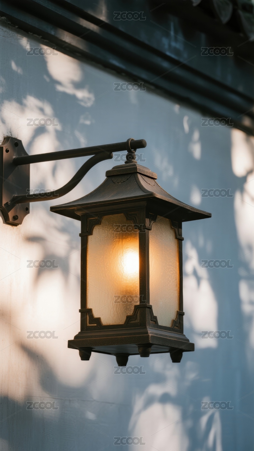 粉色墙上的一盏黑色壁挂式透明欧式壁灯特写