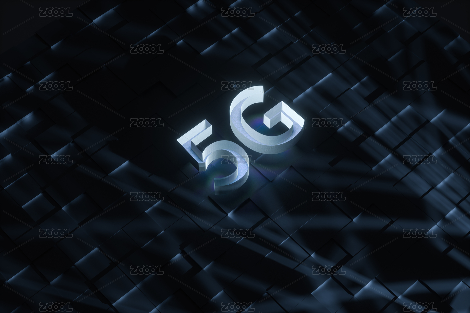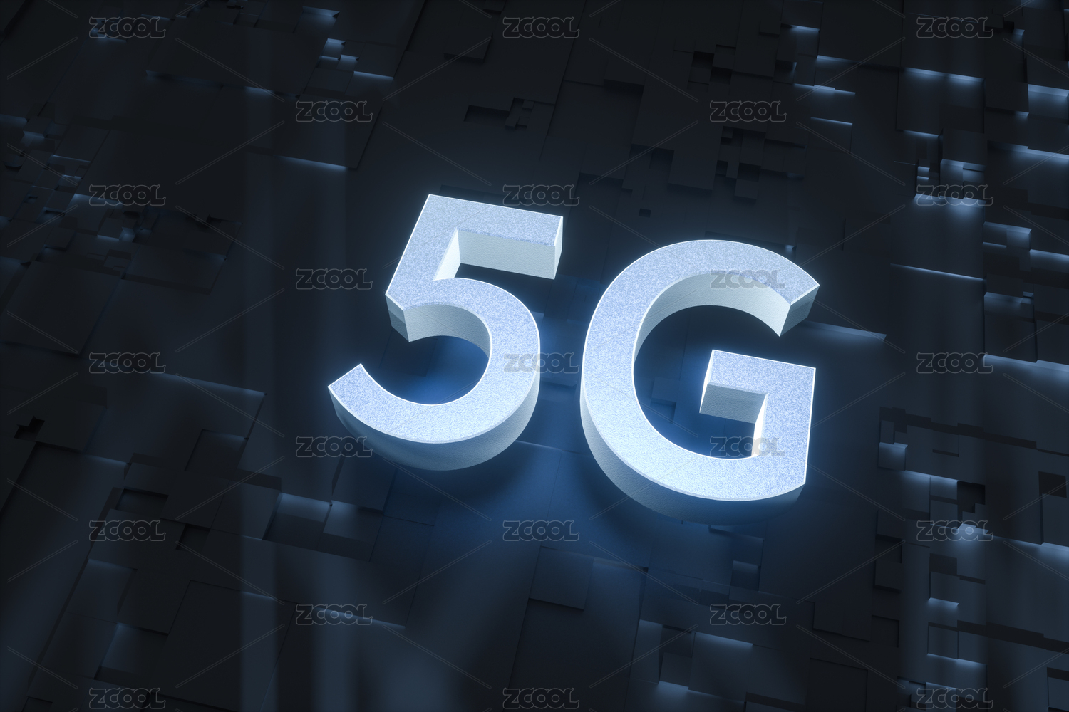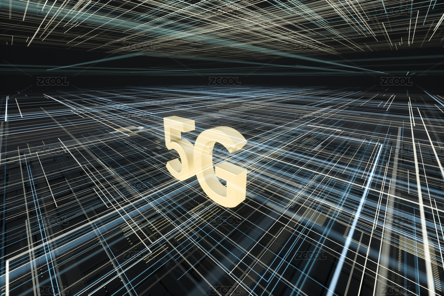 飞速的光线与光斑组成的5G字体艺术图形(科技感矢量插图)