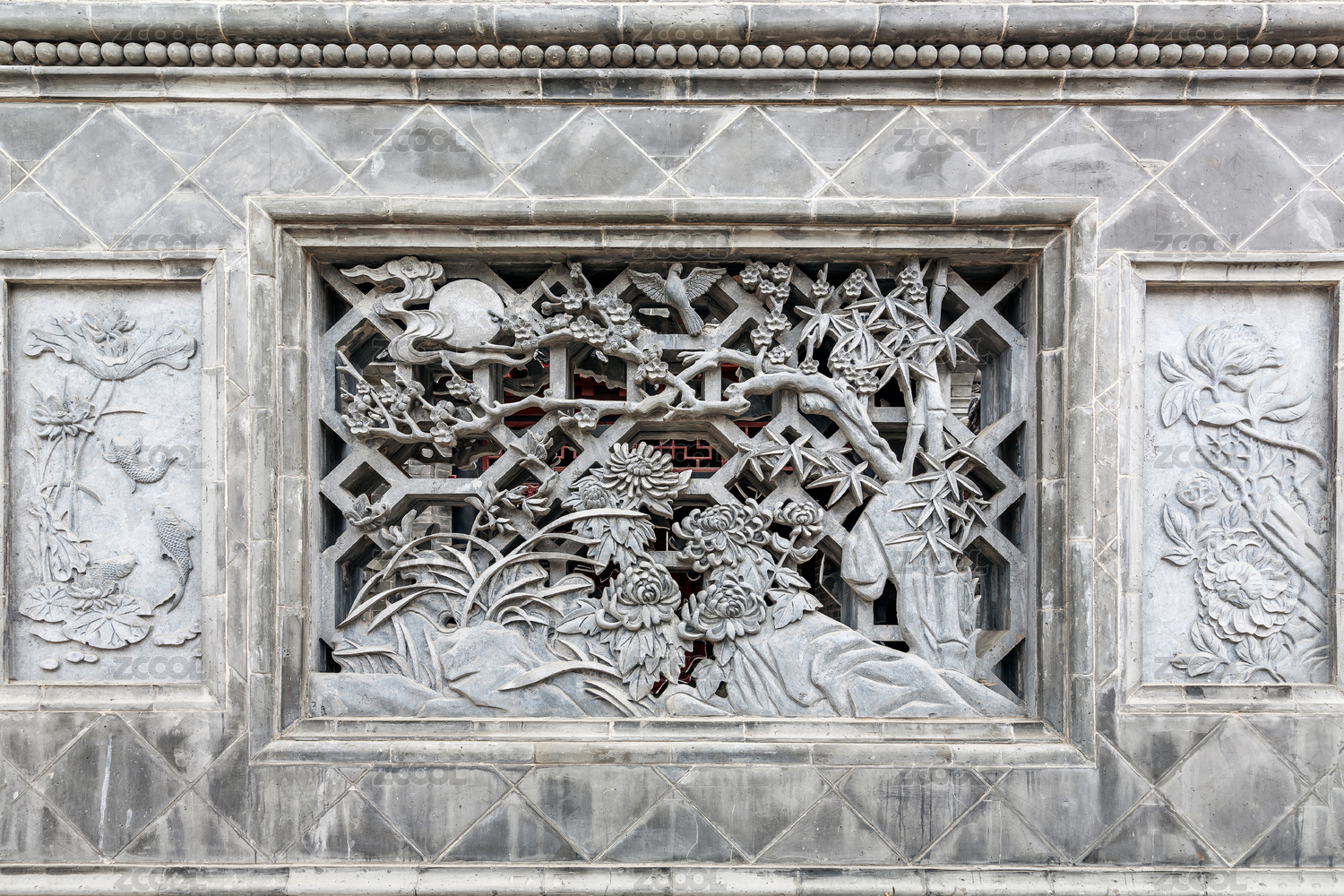 山东省惠民县魏集镇魏氏庄园镂空砖雕花园墙