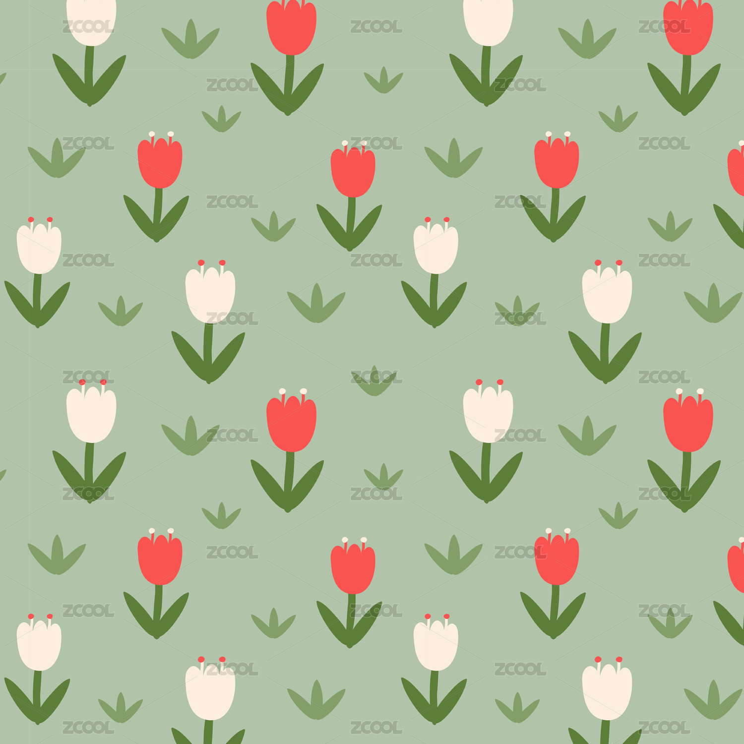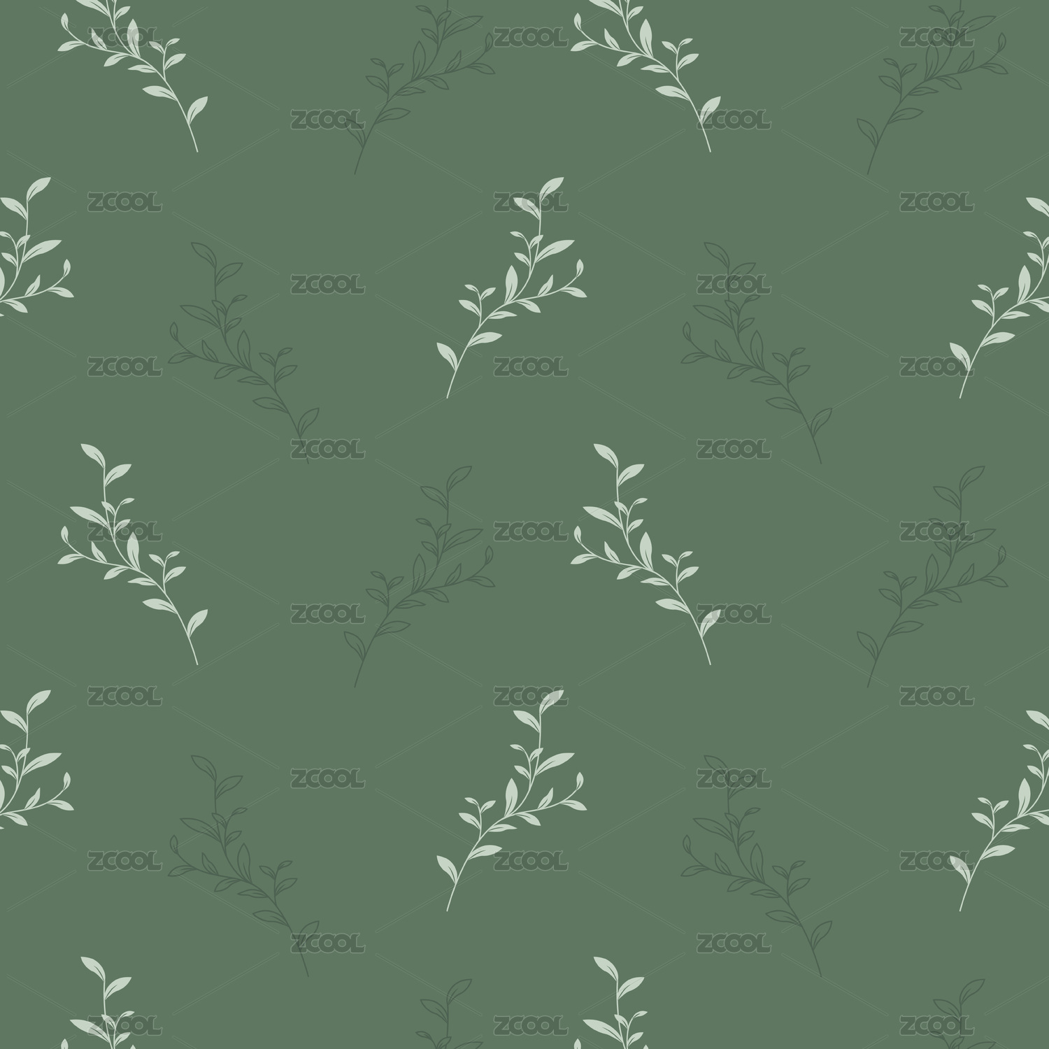 清新简单绿色植物无缝循环纹样图案免扣素材