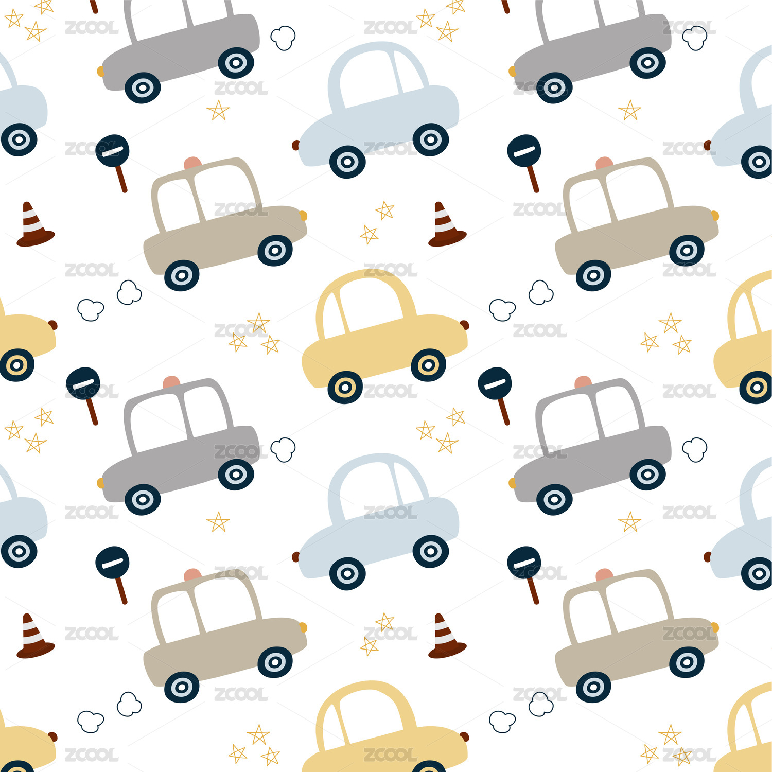 卡通可爱汽车无缝循环背景