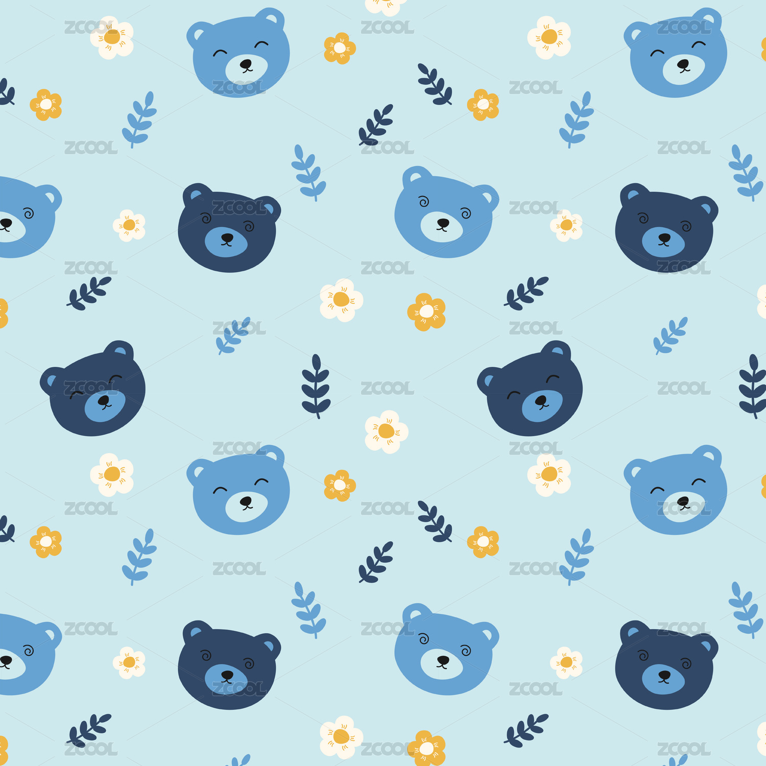 蓝色卡通小熊无缝循环背景