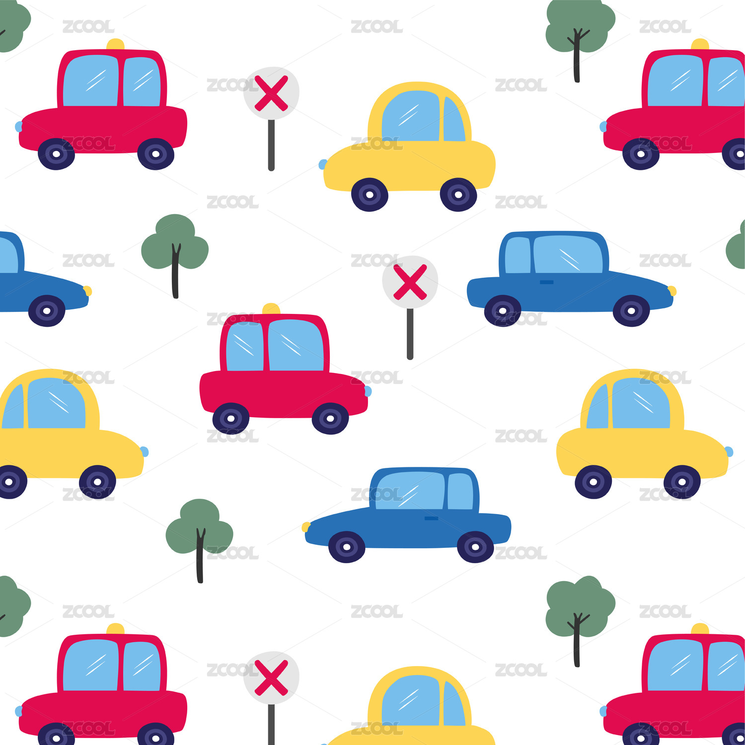 卡通手绘汽车无缝循环背景