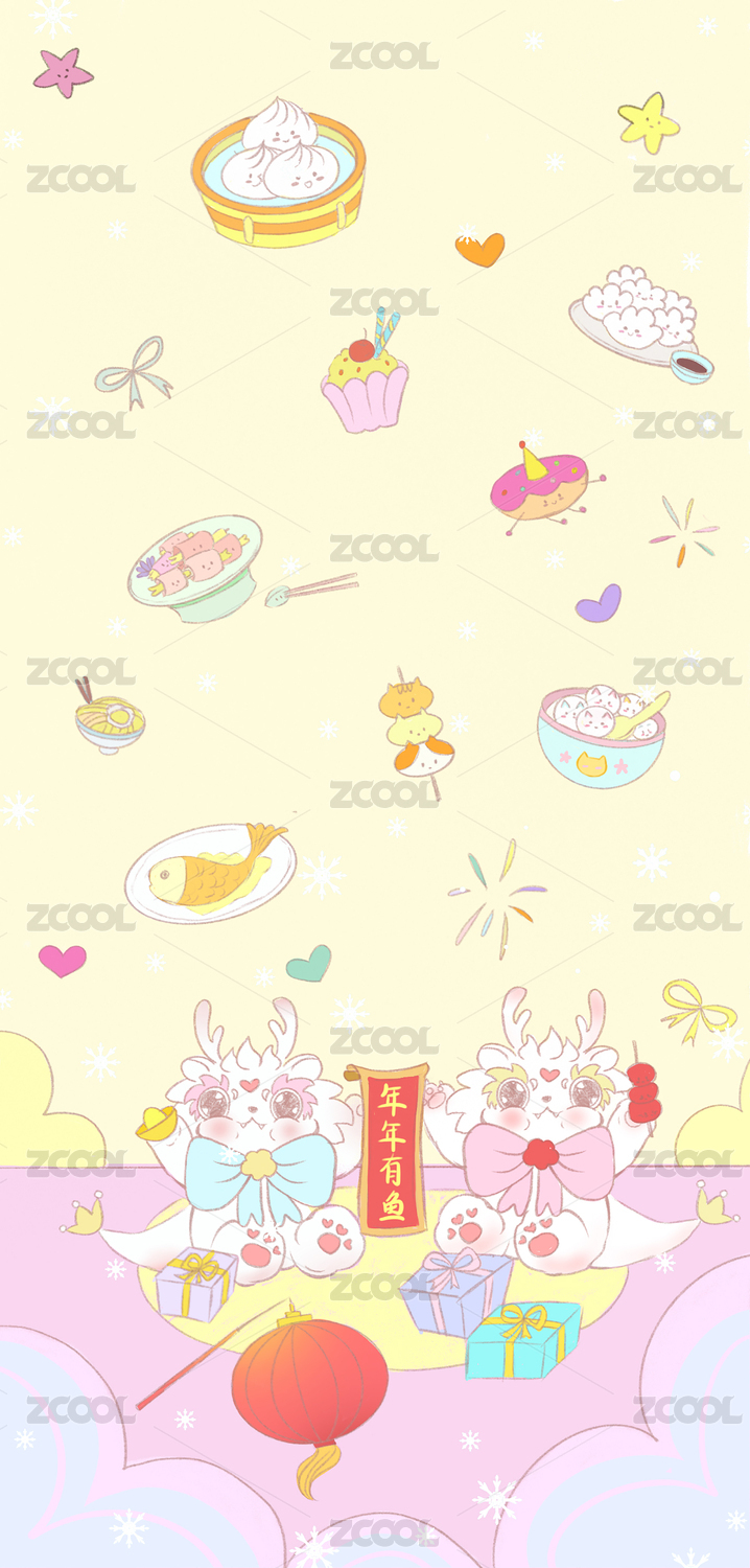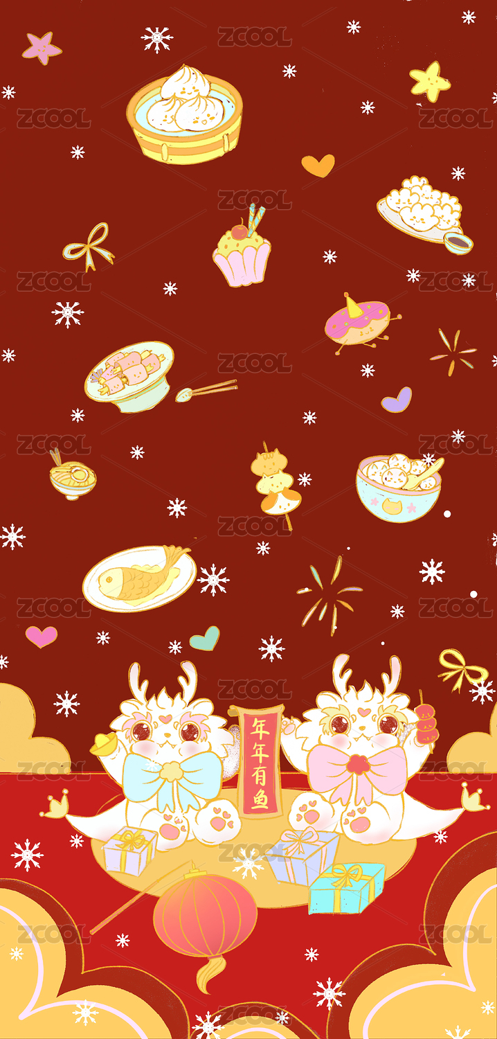龙年卡通美食无缝循环插画设计