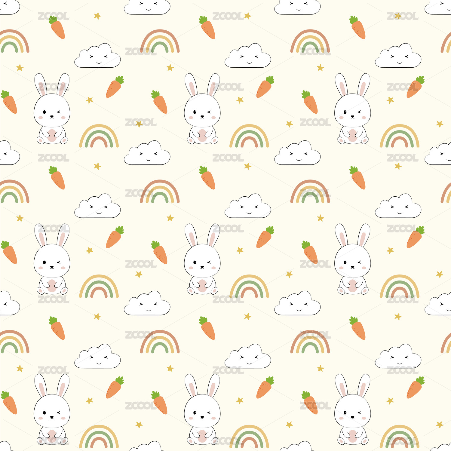 卡通彩虹兔子无缝循环背景