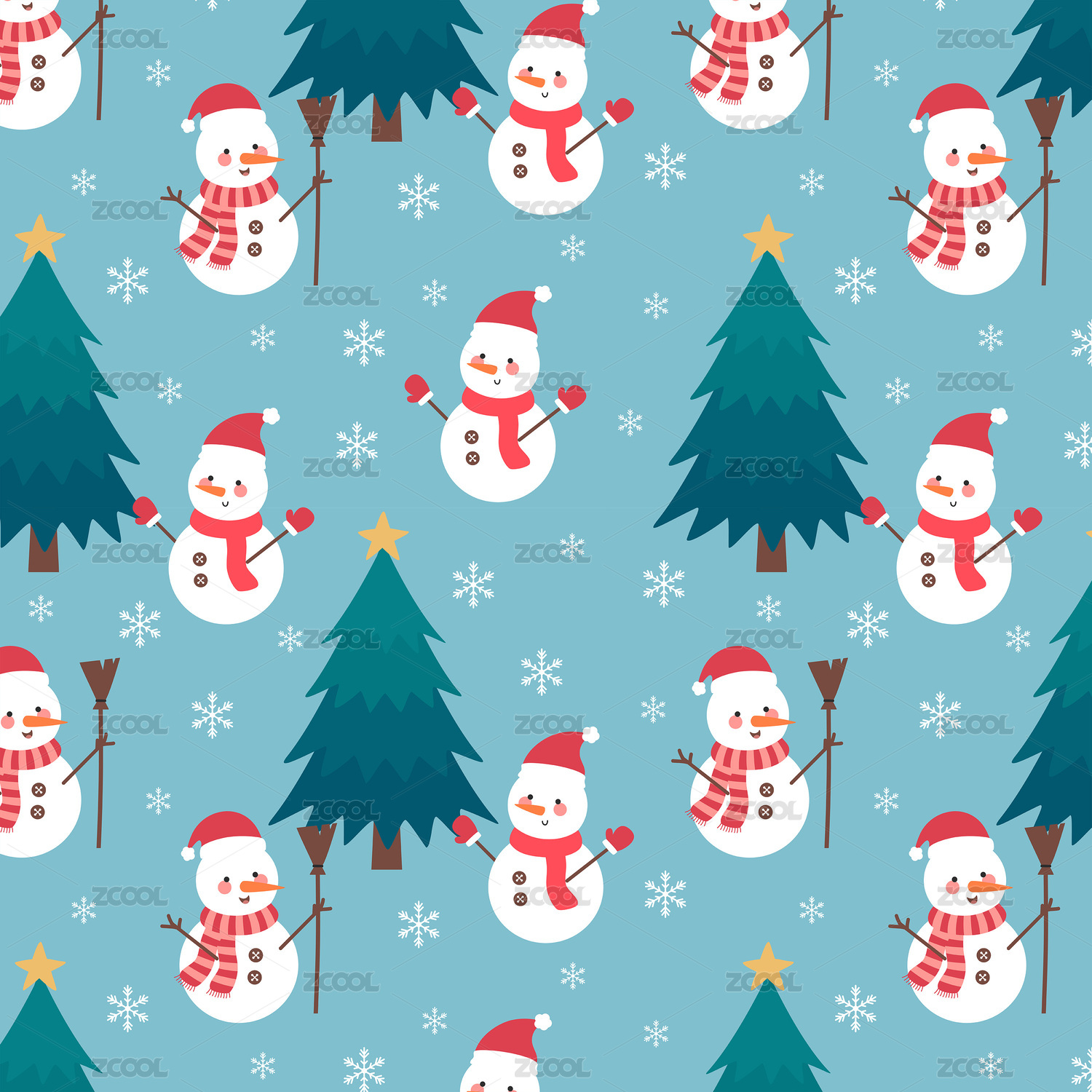 卡通圣诞雪人无缝循环图案