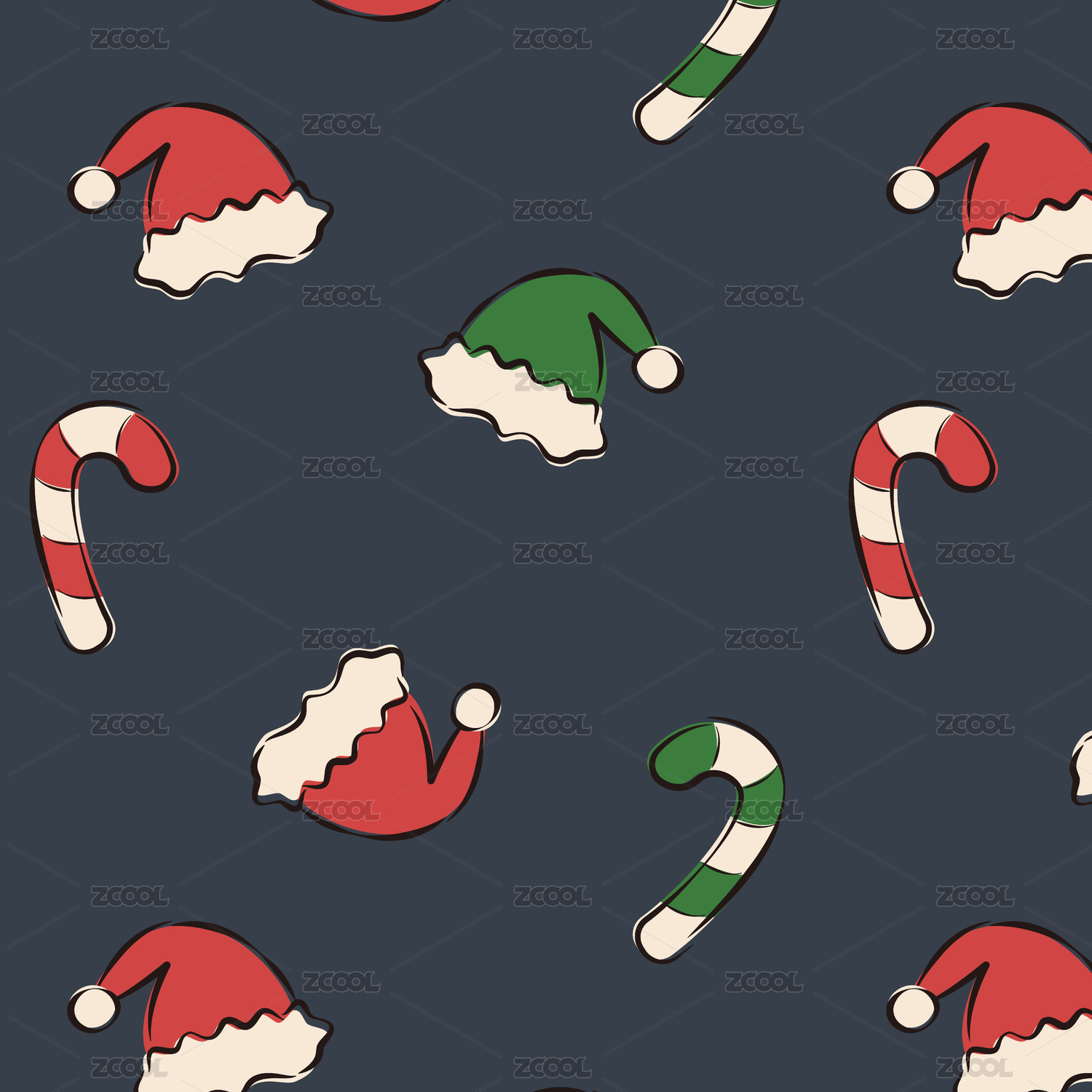 深色卡通圣诞帽无缝循环背景