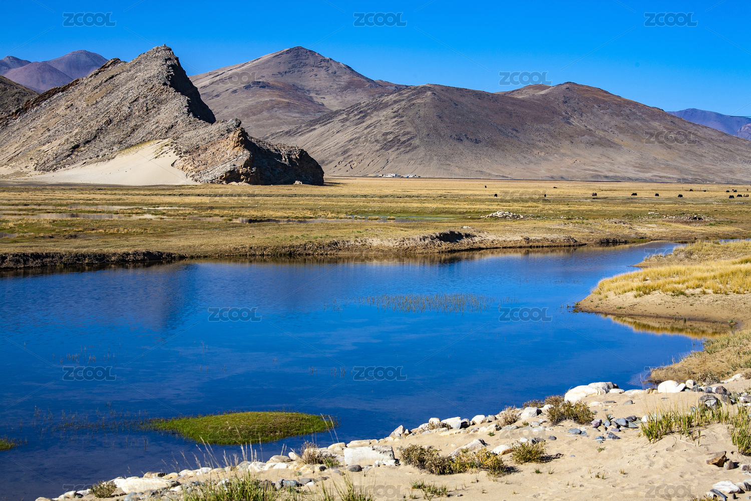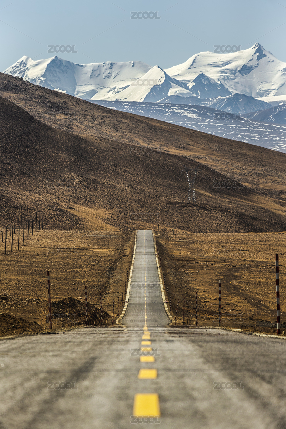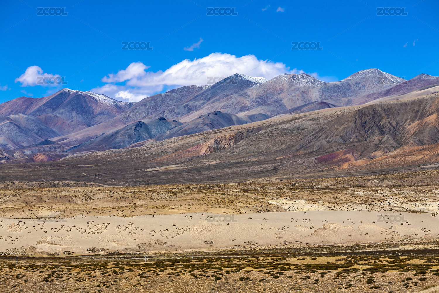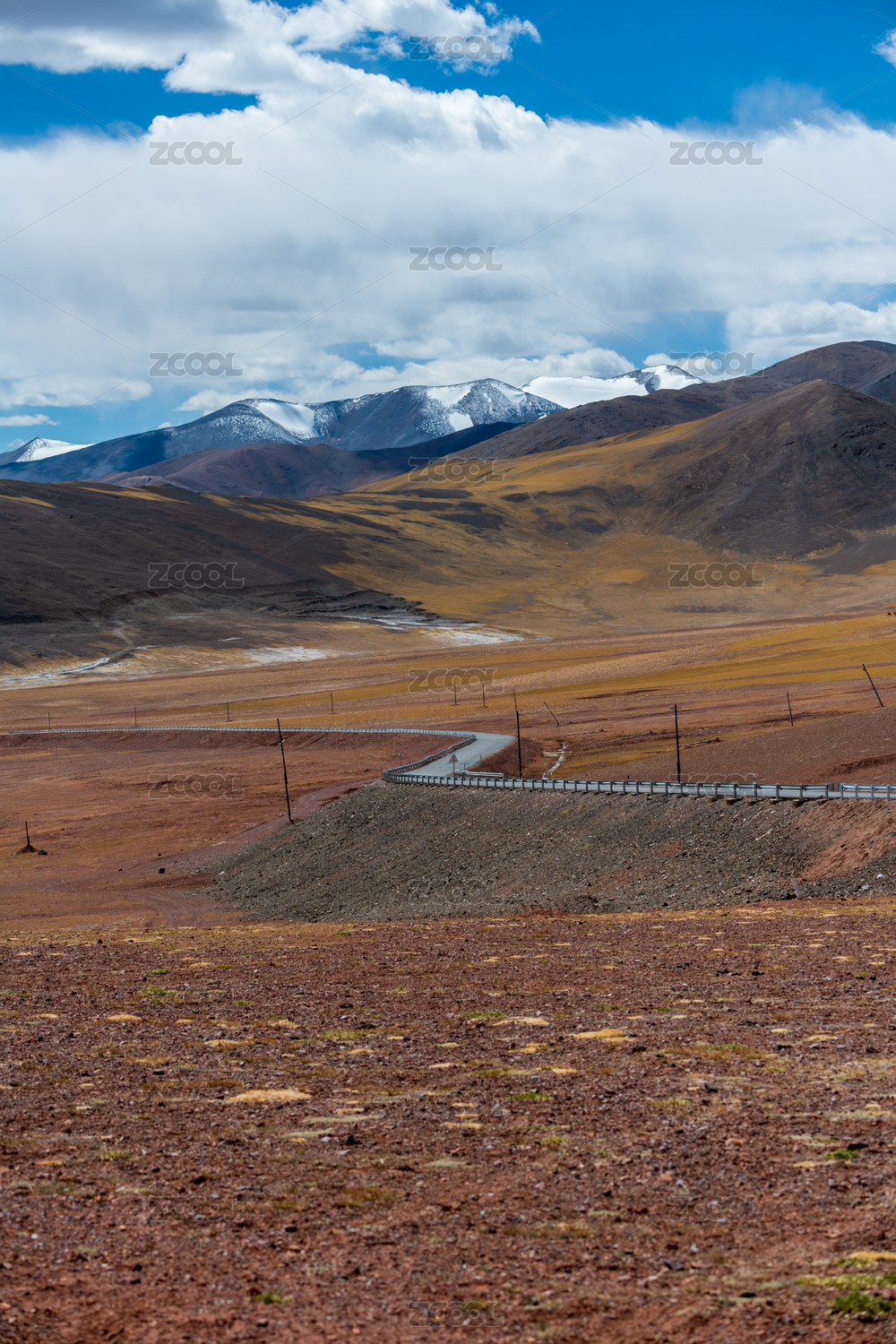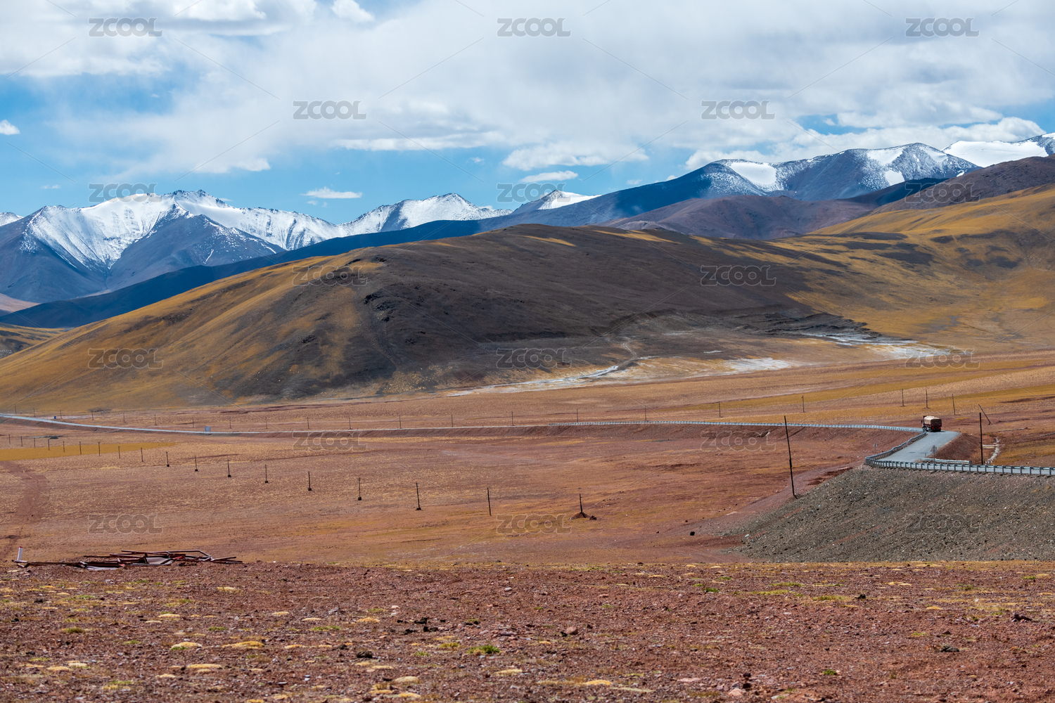 西藏萨嘎县到霍尔乡219国道的雪山湿地牧