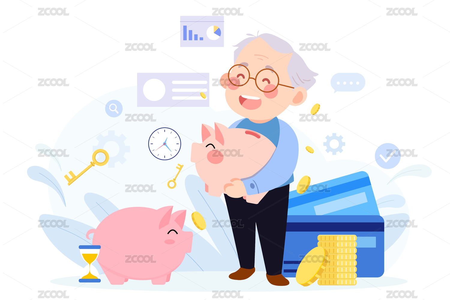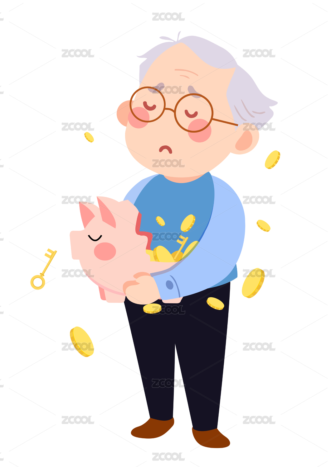 抱着储蓄罐的爷爷