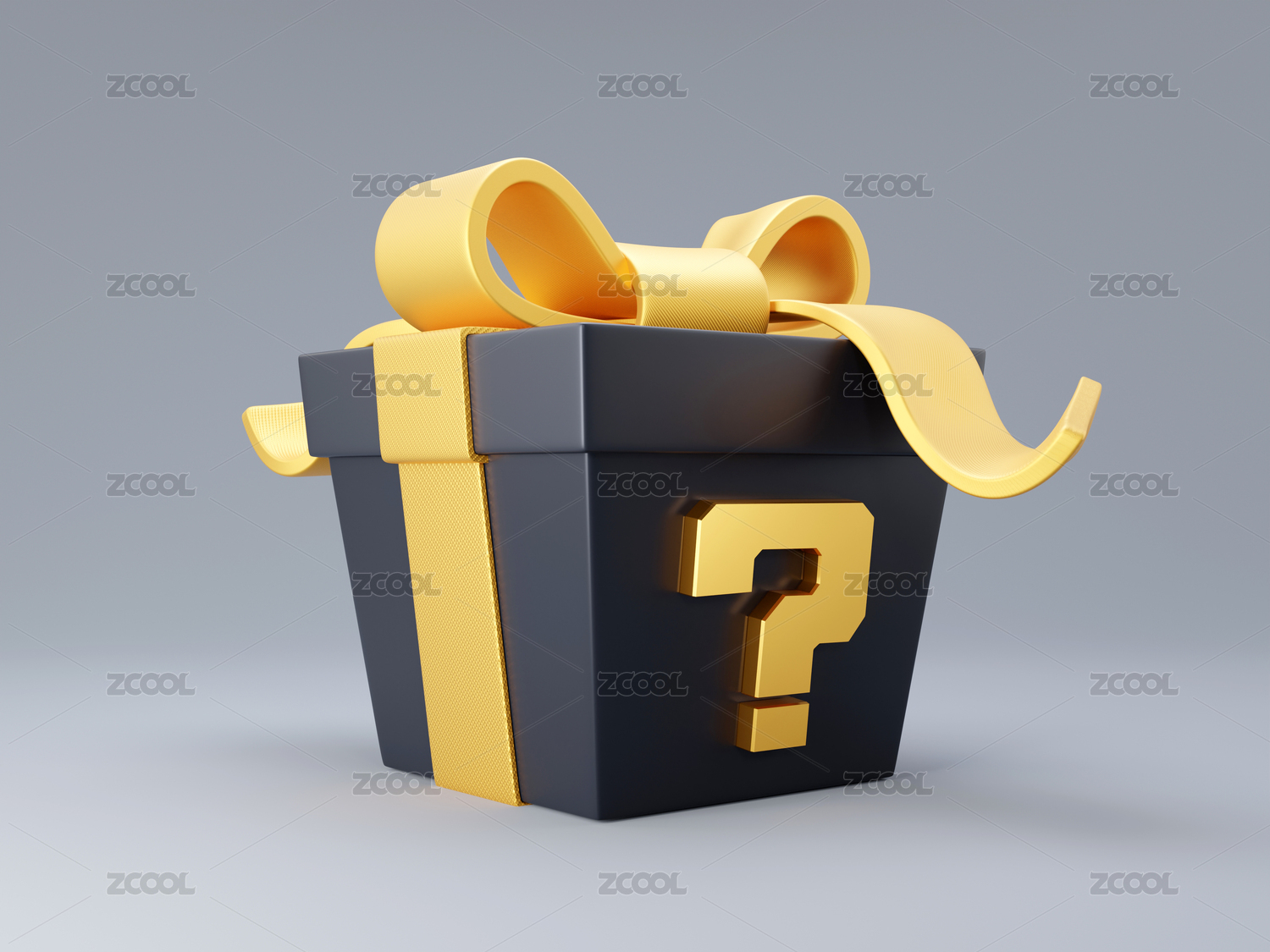 带问号的金丝带黑色礼盒盲盒创意素材