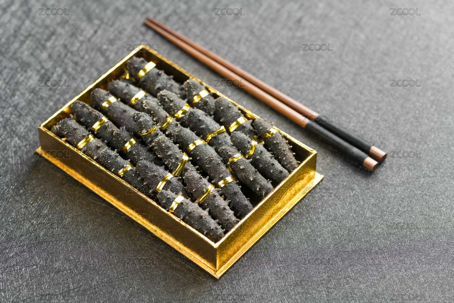 一盒海参礼盒特写黑色背景