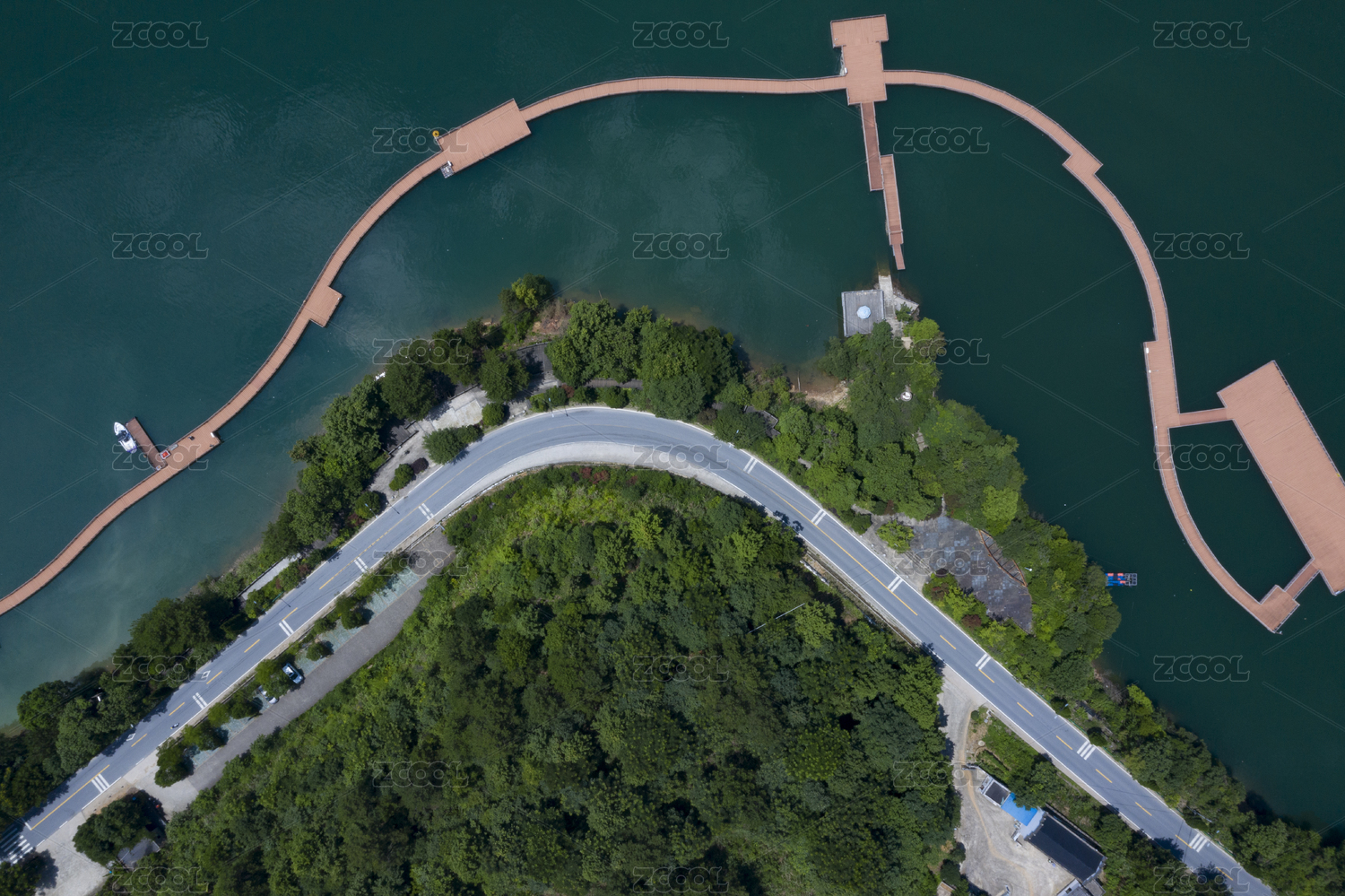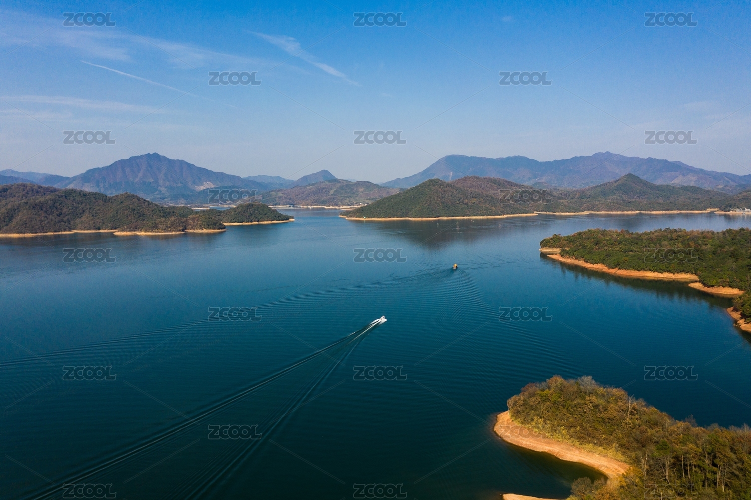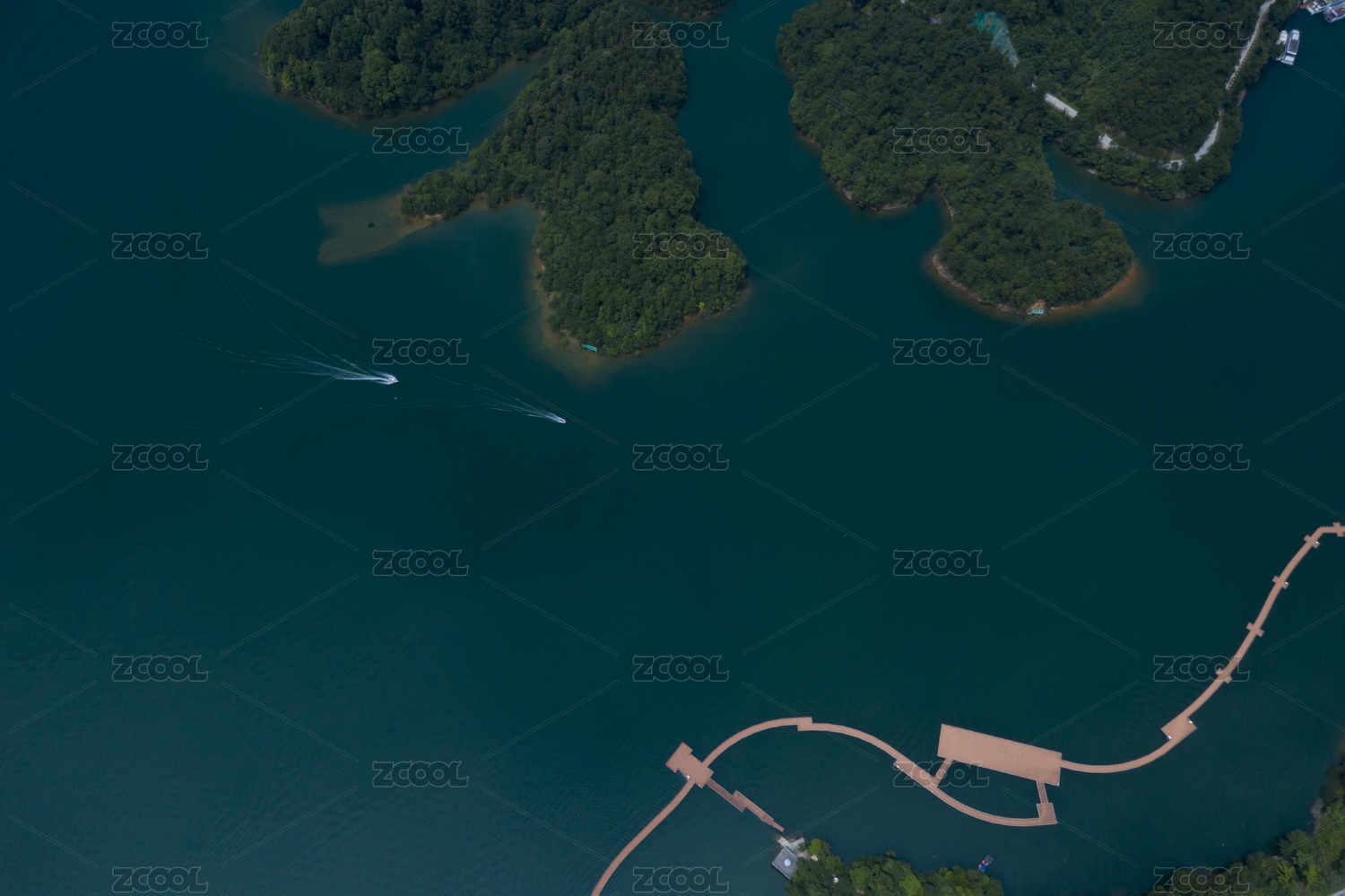 航拍安徽太平湖碧绿的水面风光